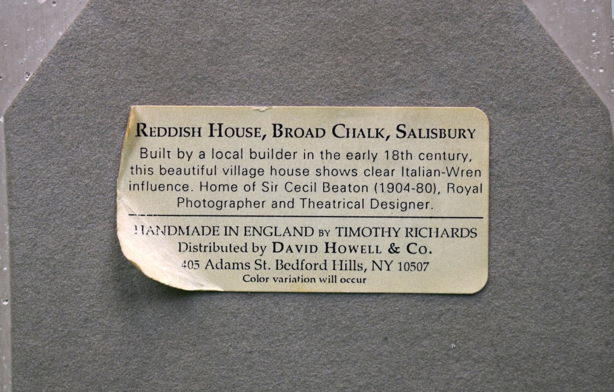 After losing the tenancy of his beloved Ashcombe House, society photographer and artist Sir Cecil Beaton bought nearby Reddish House in 1947 and transformed the interior. Beaton added rooms on the eastern side, extended the parlour southwards, and introduced many new fittings. Greta Garbo was a visitor. The upper floor had been equipped for illegal cock-fighting at the beginning of the 20th century; Beaton used the cages as wardrobes to store the costumes for his play "The Gainsborough Girls". The water garden he created in 1971 in the meadow at the front of the house, with meandering walks, is still in place. Beaton also added the indoor "Winter Garden" with a glass dome roof and a small pool in the marble floor. A historic research report by Adam Architecture is less complimentary about some other changes made during his tenure: "Beaton removed some important historic features within the house such as original partitioning and several fireplaces, and hid elements such as timber framing". He remained at the house until his death in 1980 and is buried in the churchyard.