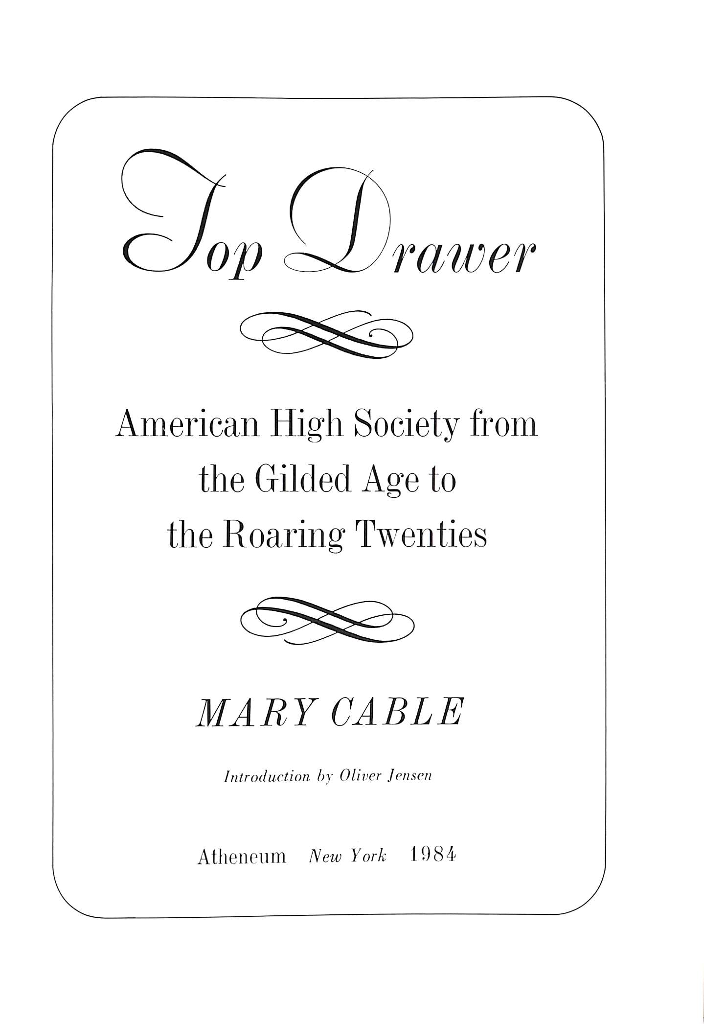 "Top Drawer: American High Society From The Gilded Age To The Roaring Twenties" 1984 CABLE, Mary
