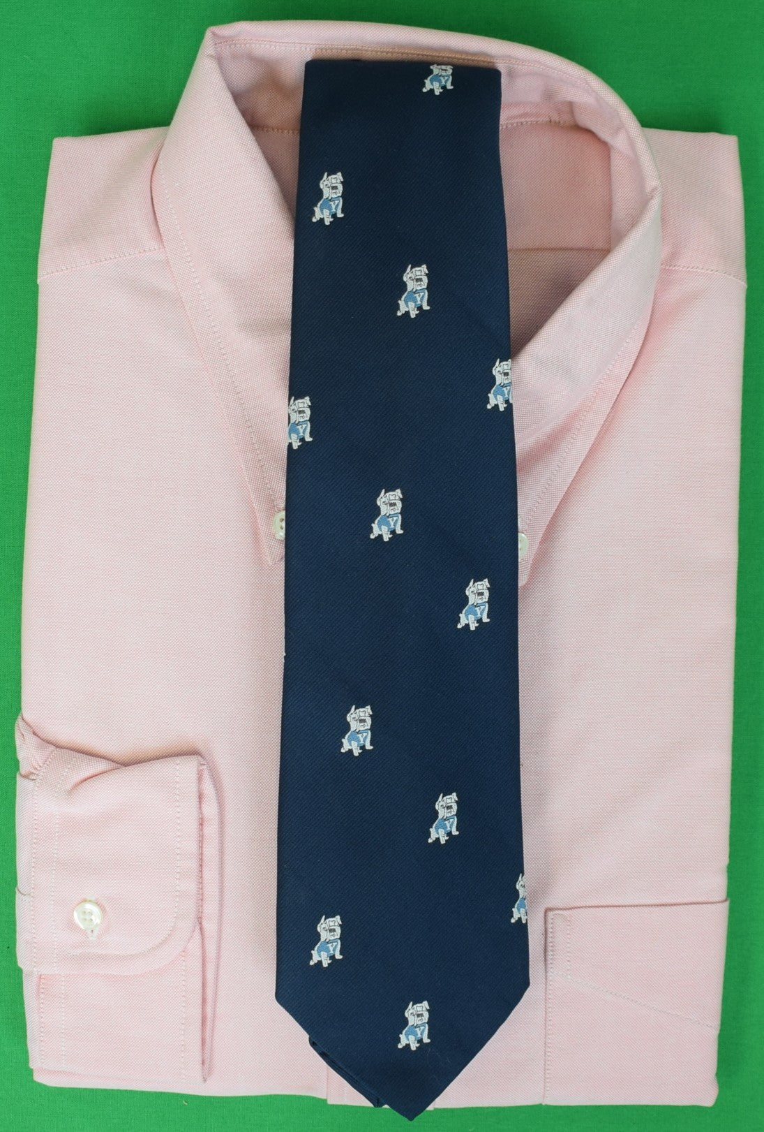 Yale's mascot is a bulldog because of the original mascot, Handsome Dan, who was purchased in 1889 by a student named Andrew Graves. The dog became popular with students for his appearance, his willingness to be around crowds and bands, and his fierce reaction to the color crimson and tigers, which represented rivals Harvard and Princeton. Yale was the first American university to have a live animal mascot, and this tradition of a bulldog named Handsome Dan has continued for generations.