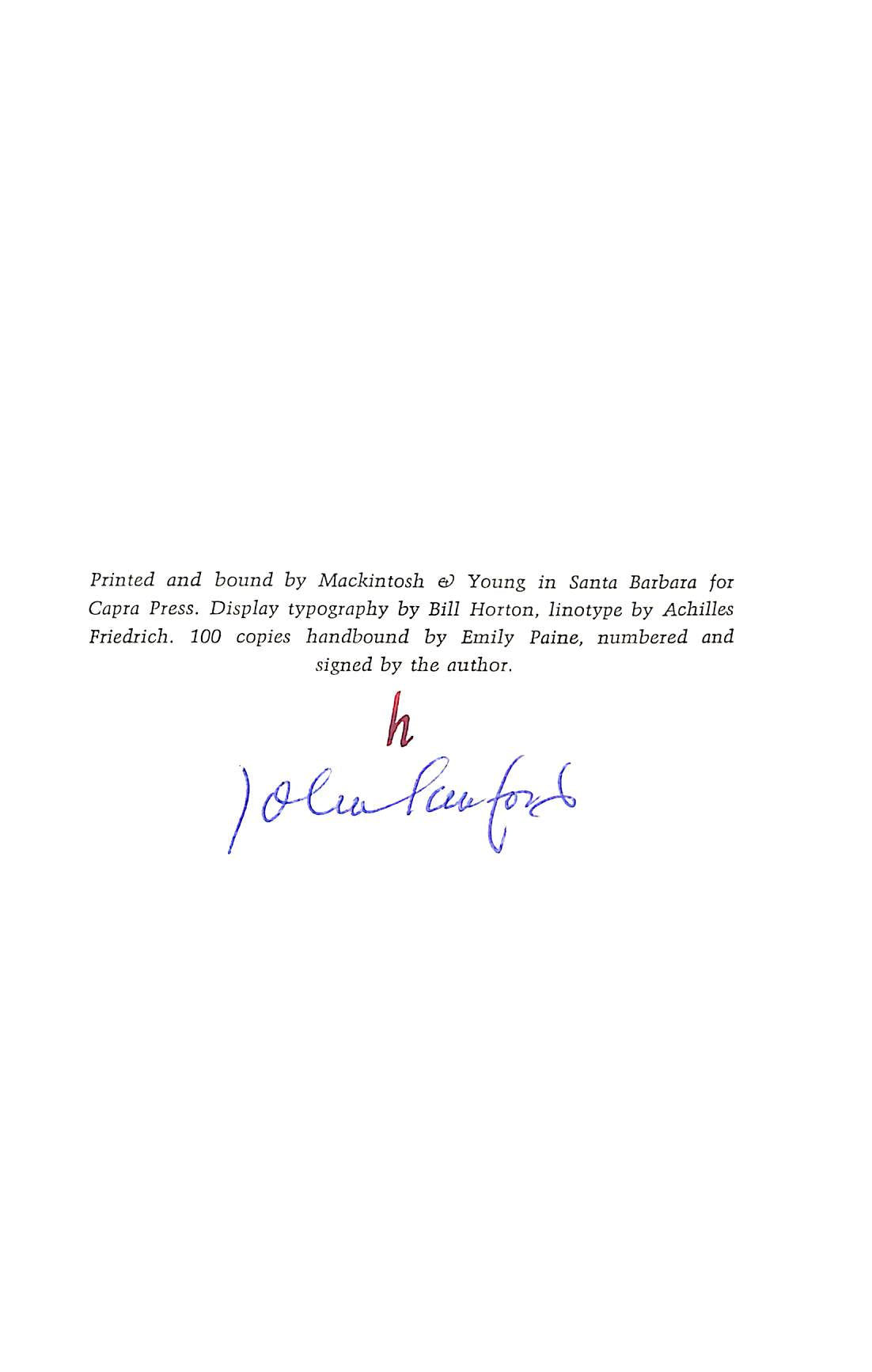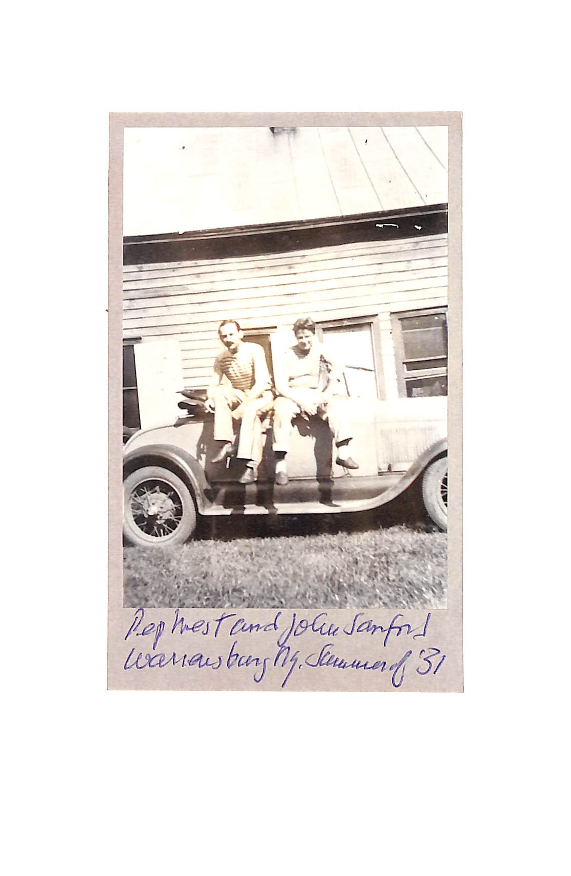 Seven short stories written by Julian L. Shapiro before he changed his name to John Sanford. He and Nathaniel West took time off to write together in the summer of 1931 near the town of Warrensburg, New York in the Adirondack Mountains. First edition, limited to 100 numbered copies. This one is out of sequence, marked "h". SIGNED by Sanford on the colophon at the end of the book where an original black & white photograph of Sanford and West is attached to the opposite page. This photo is inscribed by Sanford "Pep West and John Sanford , Warrensburg, NY, Summer of 13."