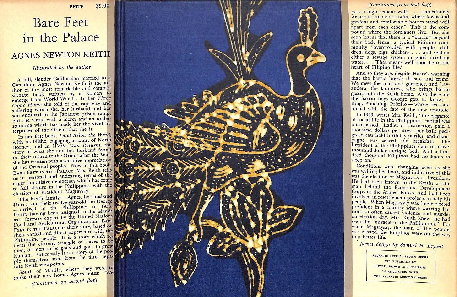 Having retired from his government's service, Keith's husband was, in 1953, prevailed upon to go to the Philippines for the Food and Agriculture Organization of the United Nations. Bare Feet in the Palace (1955) resulted. It is a mixture of personal experiences, sketches of people, and information about the society and its history. A central theme is the creation of democracy in Asia; the title refers to the coming of poor natives to the 200-year-old former palace of Spanish governors, now the residence of a democratically elected president.