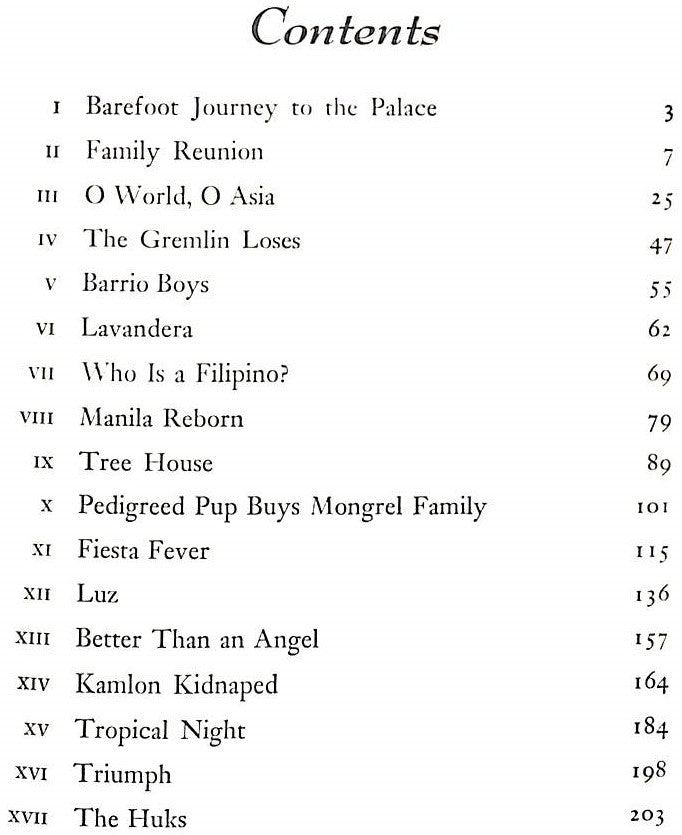 "Bare Feet in the Palace" is an excellent account of the people of the Philippines during the transition time after WWII, (1948-1952), as they became a truly independent country. It describes post-war Manila as well as the other areas of the country. There is a very heart-stirring account of the first free election. Included are anecdotes about her family's life during their time in Manila. Her adolescent son, her husband (who worked for the British Government as a Forestry Expert previous to WWII, but in the Philippines, works for the UN), herself and their life with the locals make for interesting reading. She writes about the people; how they felt, why they felt that way, how they overcame, why they didn't overcome, and the circumstances surrounding them.