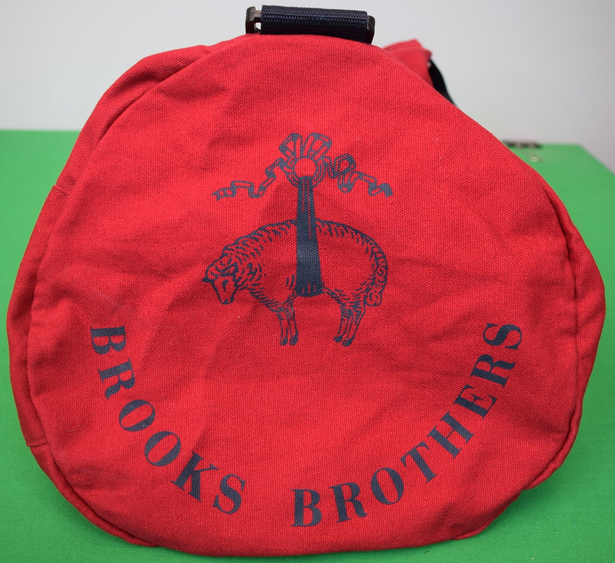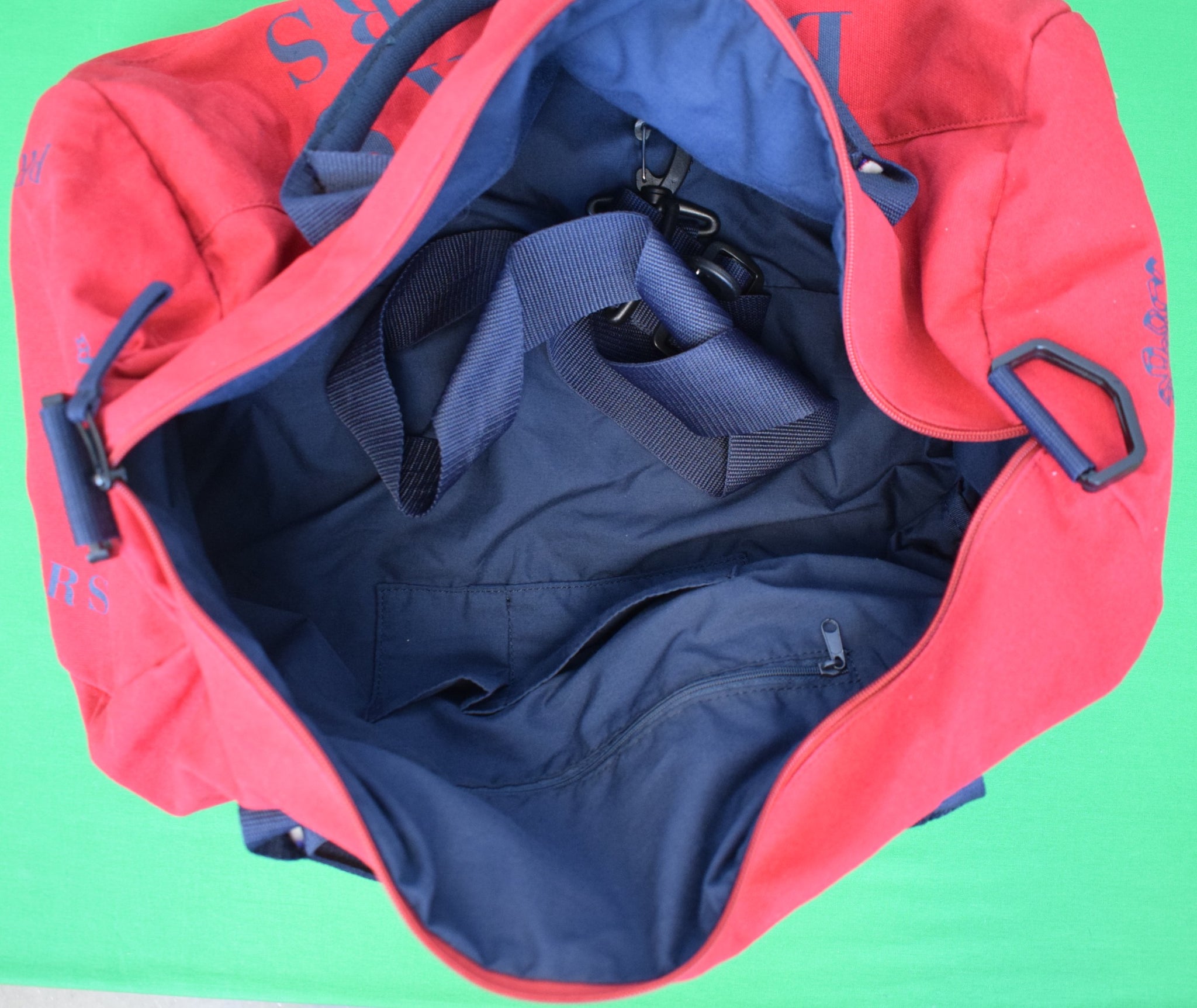 Brooks Brothers Red Canvas Duffle Bag w/ Navy Handle Trim