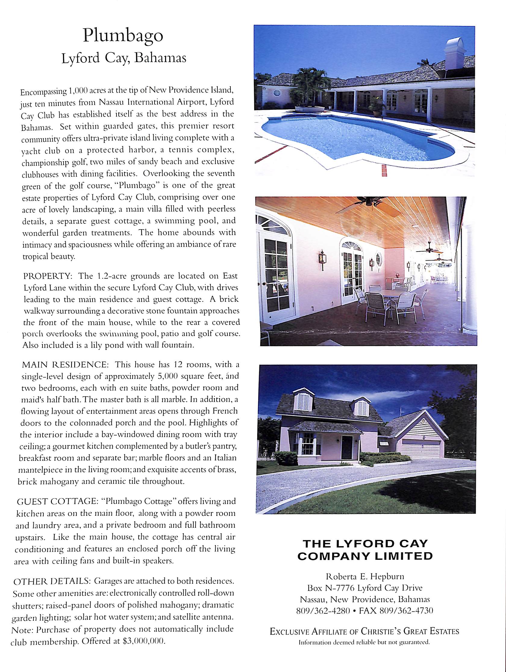 Christie's Great Estates: Plumbago - Lyford Cay, Bahamas Prospectus Card