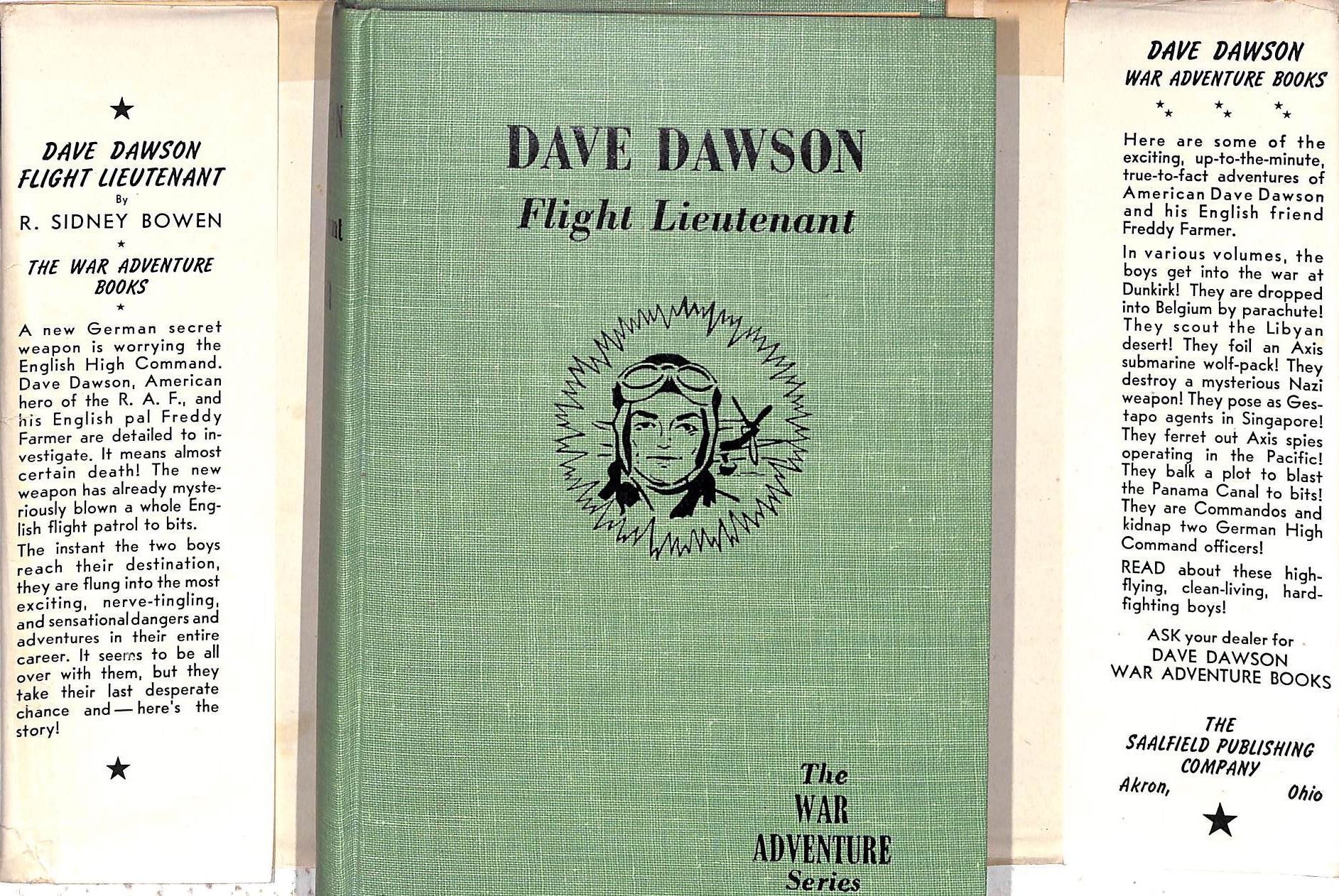 The Dave Dawson War Adventure Series encompasses 15 novels about young Dave Dawson, just our of high school and following his father to Europe at the start of the conflict that would become World War 2. After befriending a young English lad, Freddy Farmer, the two teens find themselves fighting along side the brave British troops determined to keep the Nazis from ever setting foot on English soil. Through the series they do not age but do travel around a lot taking part in such operations ad Dunkirk, Guadalcanal and Truk Island. They distinguish themselves as they fly and shoot down the enemy whether they are on European soil, in the Pacific or even at home where Nazi infiltrators are bent on wrecking havoc. The two lads make a name for themselves, form an unbreakable friendship, and fight against the odds. overcoming them at the very last moment. As with many series for young boys, the themes are built around patriotism and bravery, friendship and loyalty. And, while some of the references might seem rude or racist, they were products of the time in which they were authored. That author, Robert Sidney Bowen, was an American teenager when he flew for the Royal Air Force during World War 1. He became a journalist and author starting at the end of the war in England and later in Chicago. He was responsible for at least three series of adventures for boys plus numerous individual books built around his love of sports. He was active from 1930 (at the age of 20) until his final book, Hot Rod Doom, in 1973, just six years before his death.