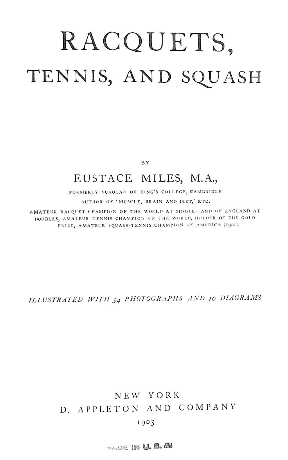 "Racquets, Tennis, And Squash" MILES, Eustace 1903 (SOLD)