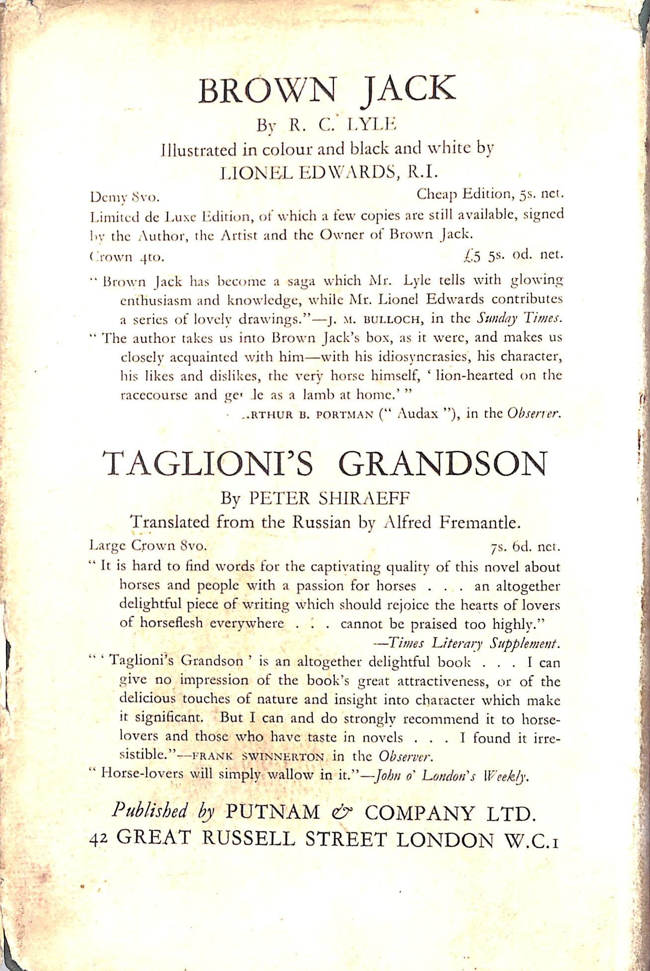 The interwar story of the all-conquering Aga Khan's horseracing stable, with details of his winners and accounts of other leading owners during the period, with original artwork by Lionel Edwards illustrating the great horses and races