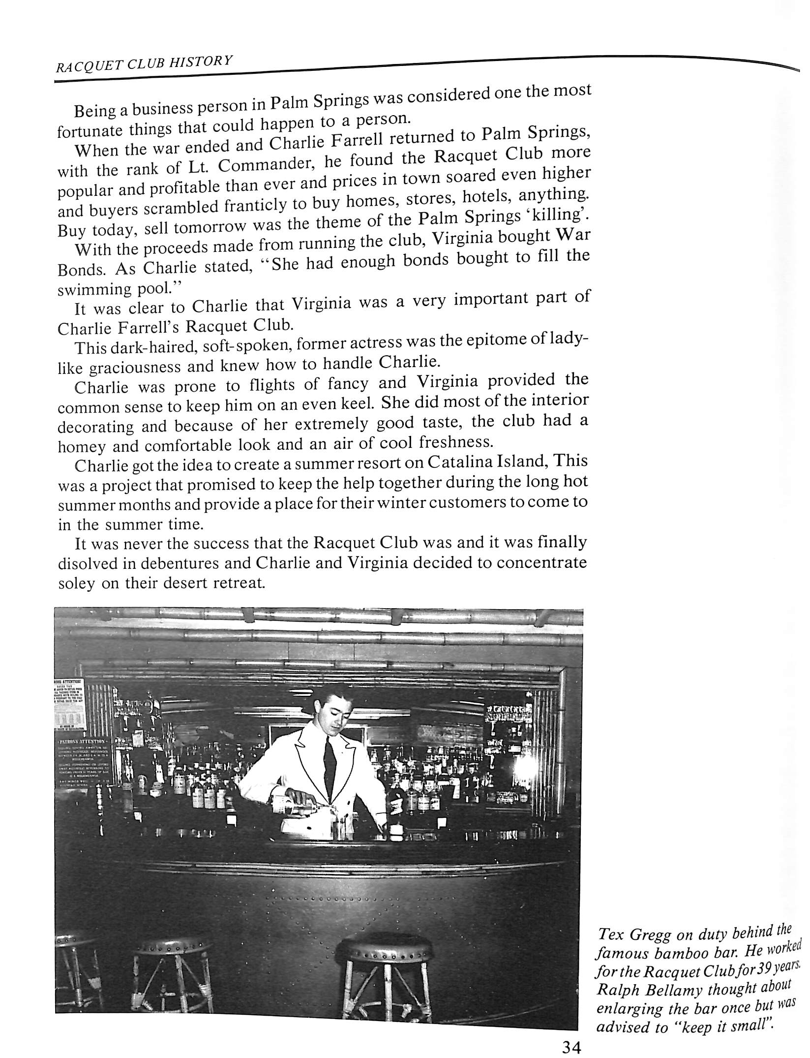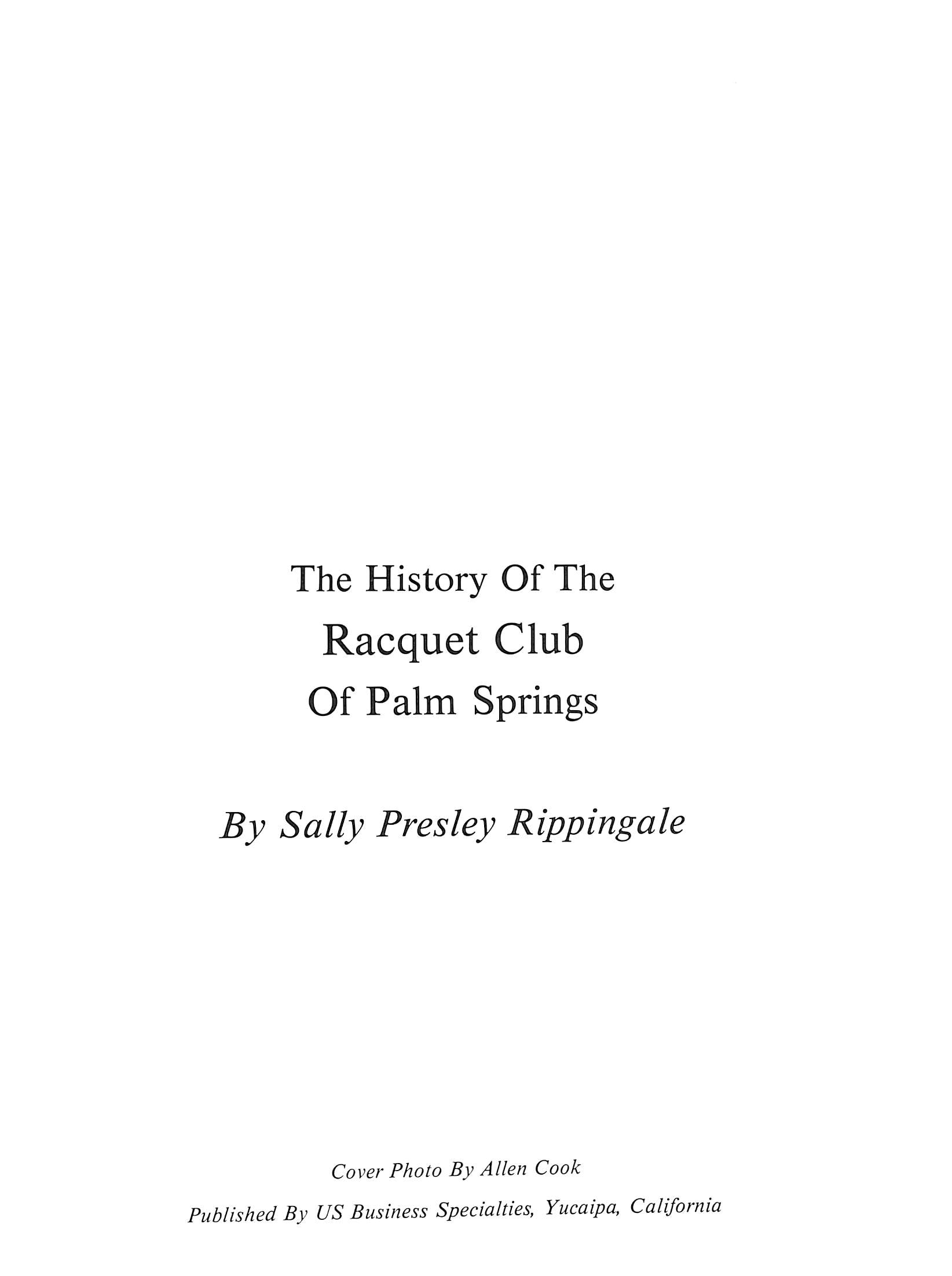 "The History Of The Racquet Club Of Palm Springs" 1984 RIPPINGALE, Sally Presley