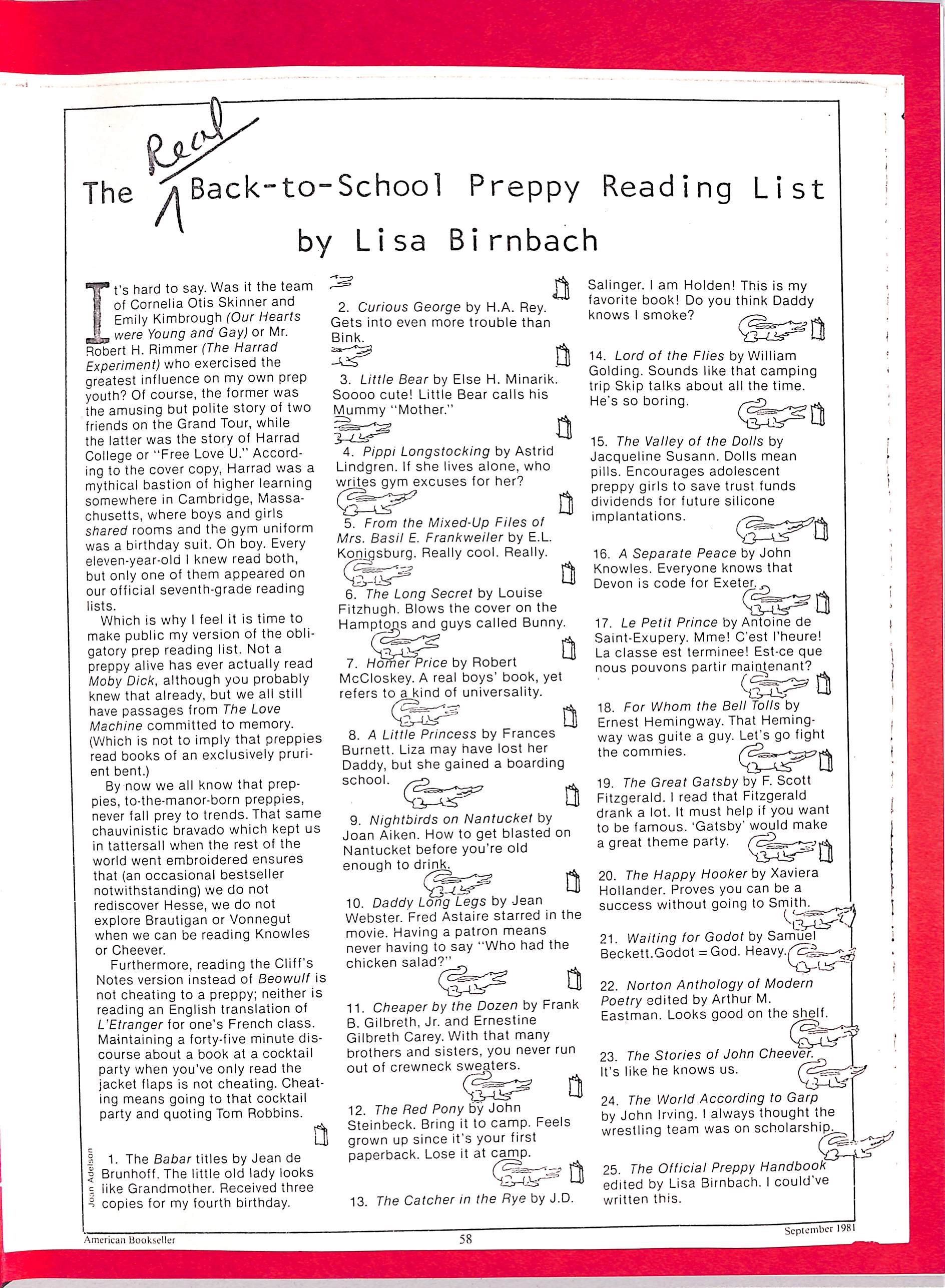 "There students can still actually study the liberal arts because they will be able to mooch off their parents for the rest of their lives." The cover inset features caricatures of H-SC President Josiah Bunting III and his wife, Diana, and Brooks Brothers' golden fleece logo. Ms. Birnbach spoke of the Buntings in her introduction. For unknown reasons, the 1981 yearbook staff "just dropped the ball." When college officials learned of it toward the end of the school year, it was too late to complete the work.