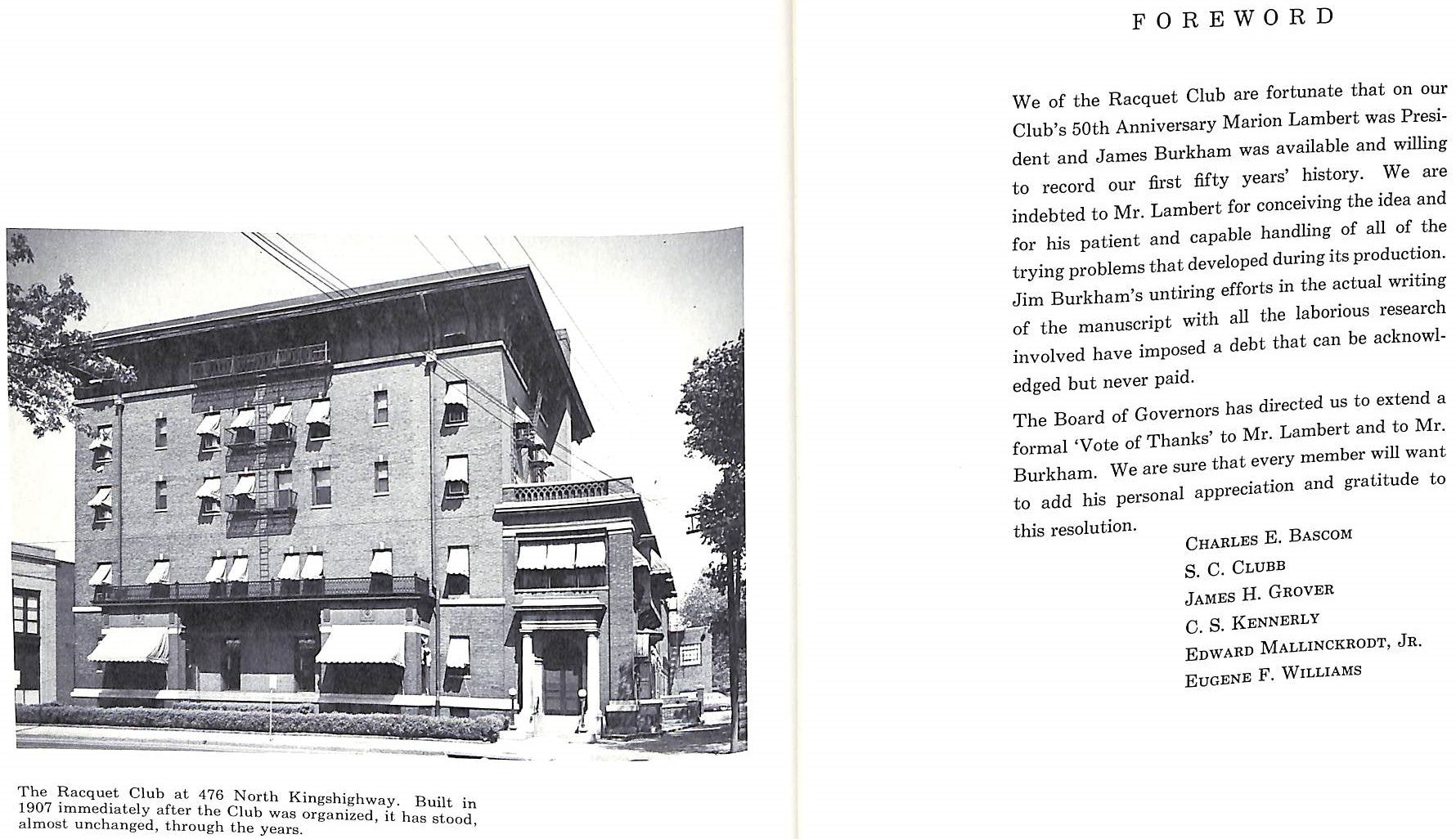 Establishment (1906-1907): The club's iconic clubhouse at 476 N. Kingshighway Blvd was designed by Mauran, Russell & Garden and formally opened at the end of 1907, becoming a landmark.