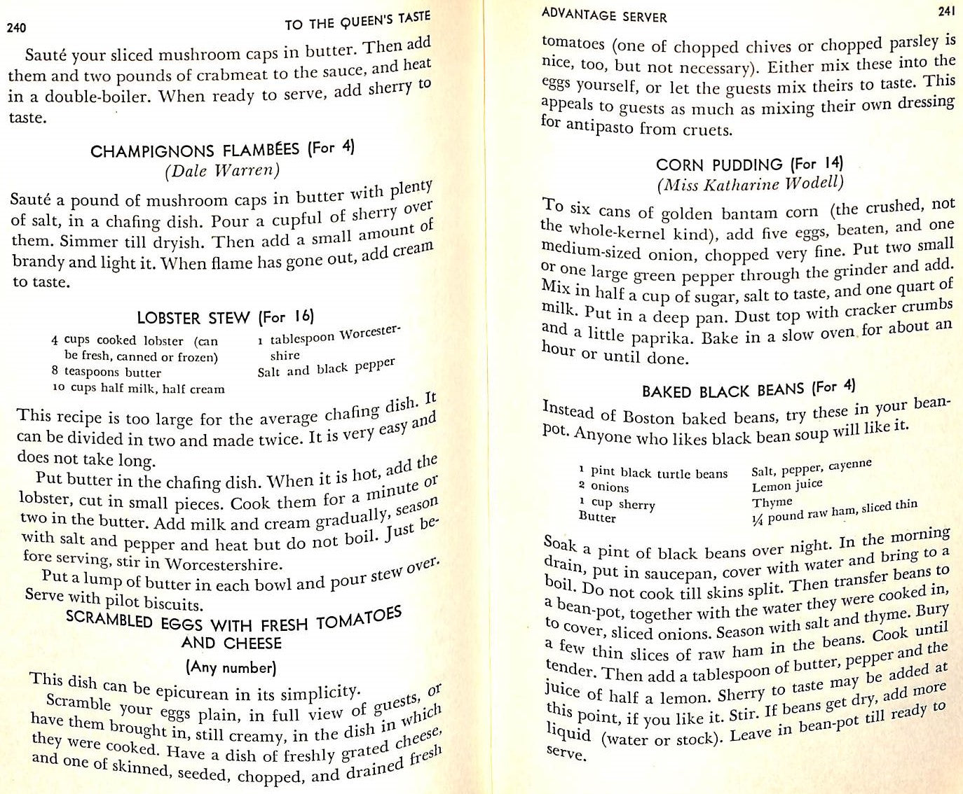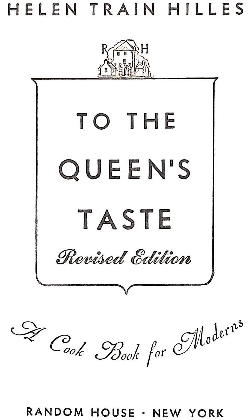 "To The Queen's Taste: A Cook Book For Moderns" 1950 HILLES, Helen Train