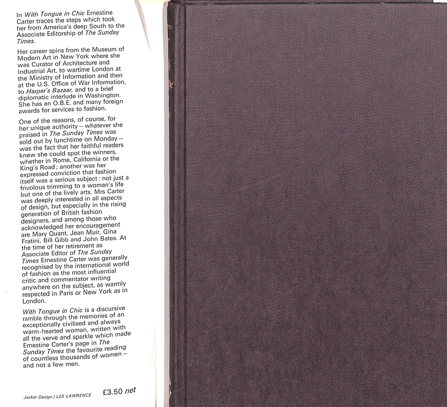 In her entertaining and informative autobiography, Carter recalls her illustrious career as Fashion Editor at Harper’s Bazaar during the 50s, describing her attendance at haute couture shows throughout Europe, including the exhilaration of seeing Dior’s ‘New Look’ for the first time. Her insightful commentary on designers and fashion continued into the 60s as women’s editor, and later associate editor at The Sunday Times, where she backed a rising generation of British designers including Mary Quant and Jean Muir.