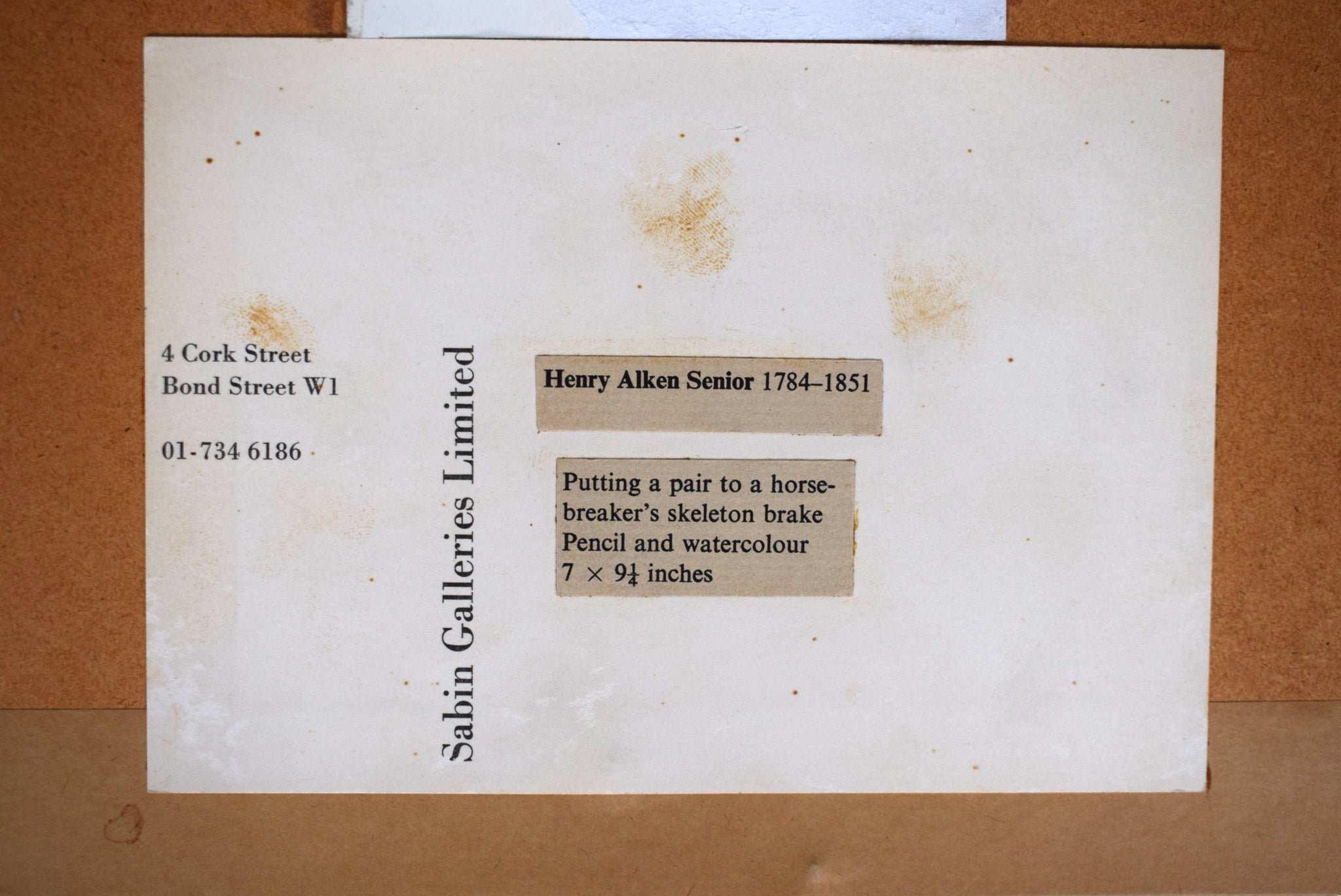 w/ Sabin Galleries Limited (1969-1978) 4 Cork Street/ Bond Street W1 gallery label