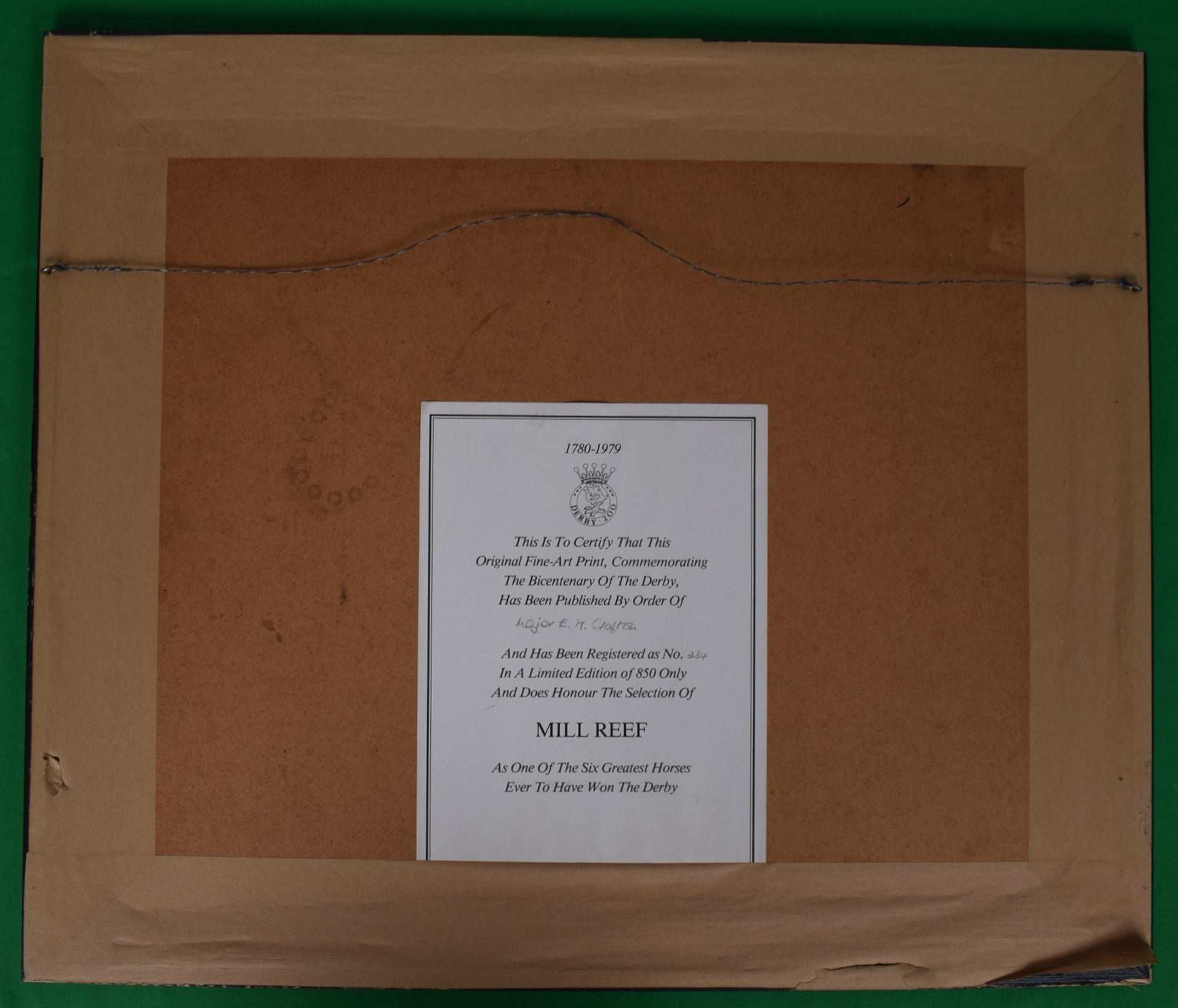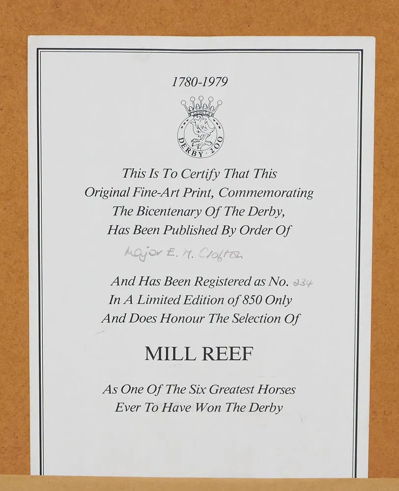 One of an original limited edition of six lithographs commemorating the 200th running of the derby, 6th June 1979