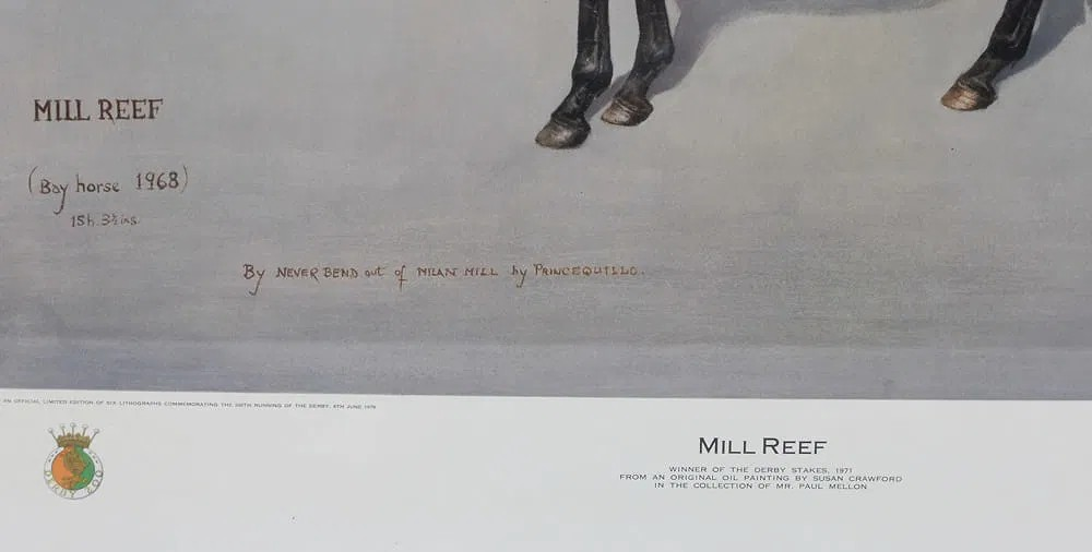 Mill Reef Winner of the Derby Stakes 1971 by Susan Crawford Provenance: The Susie Hilfiger Collection