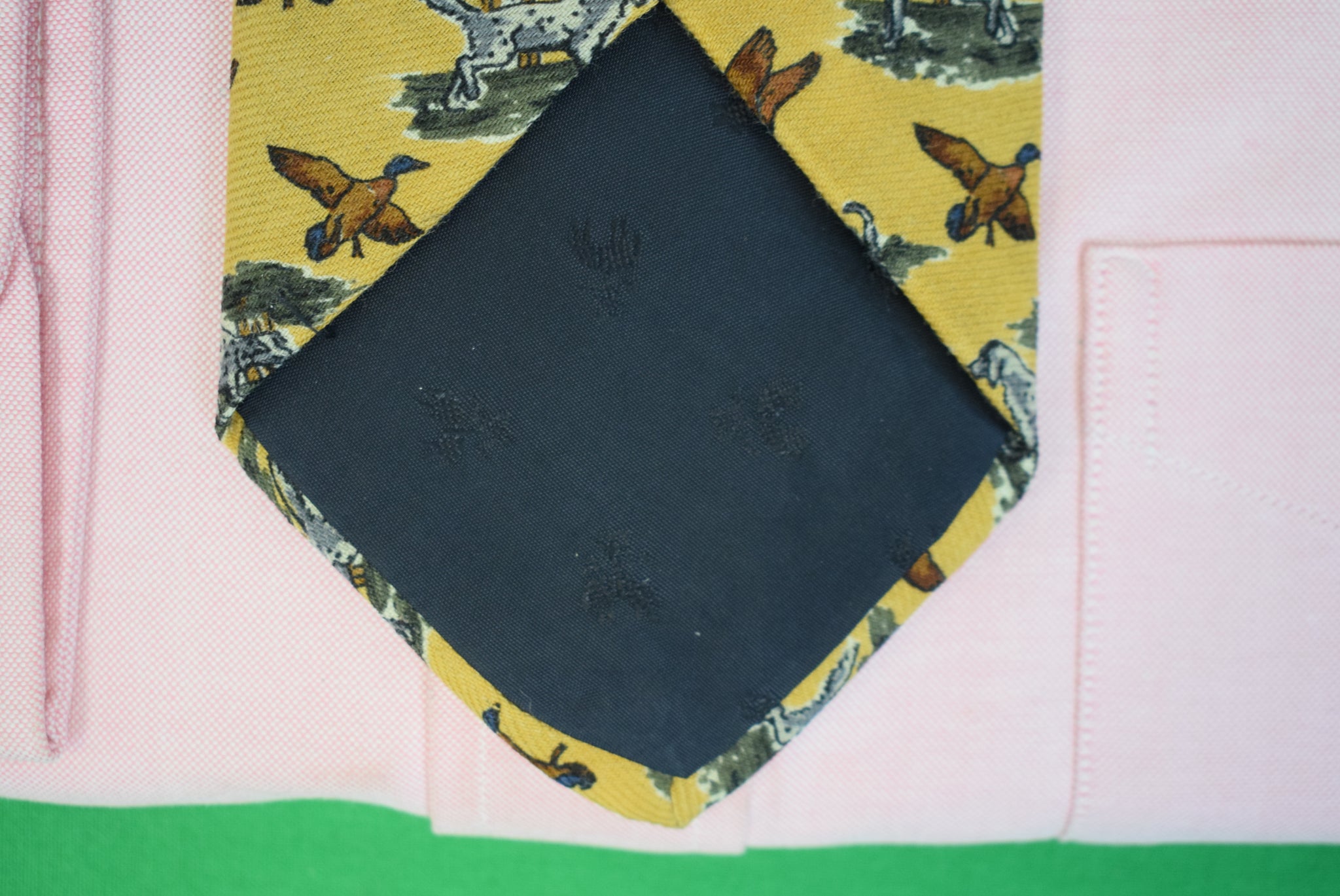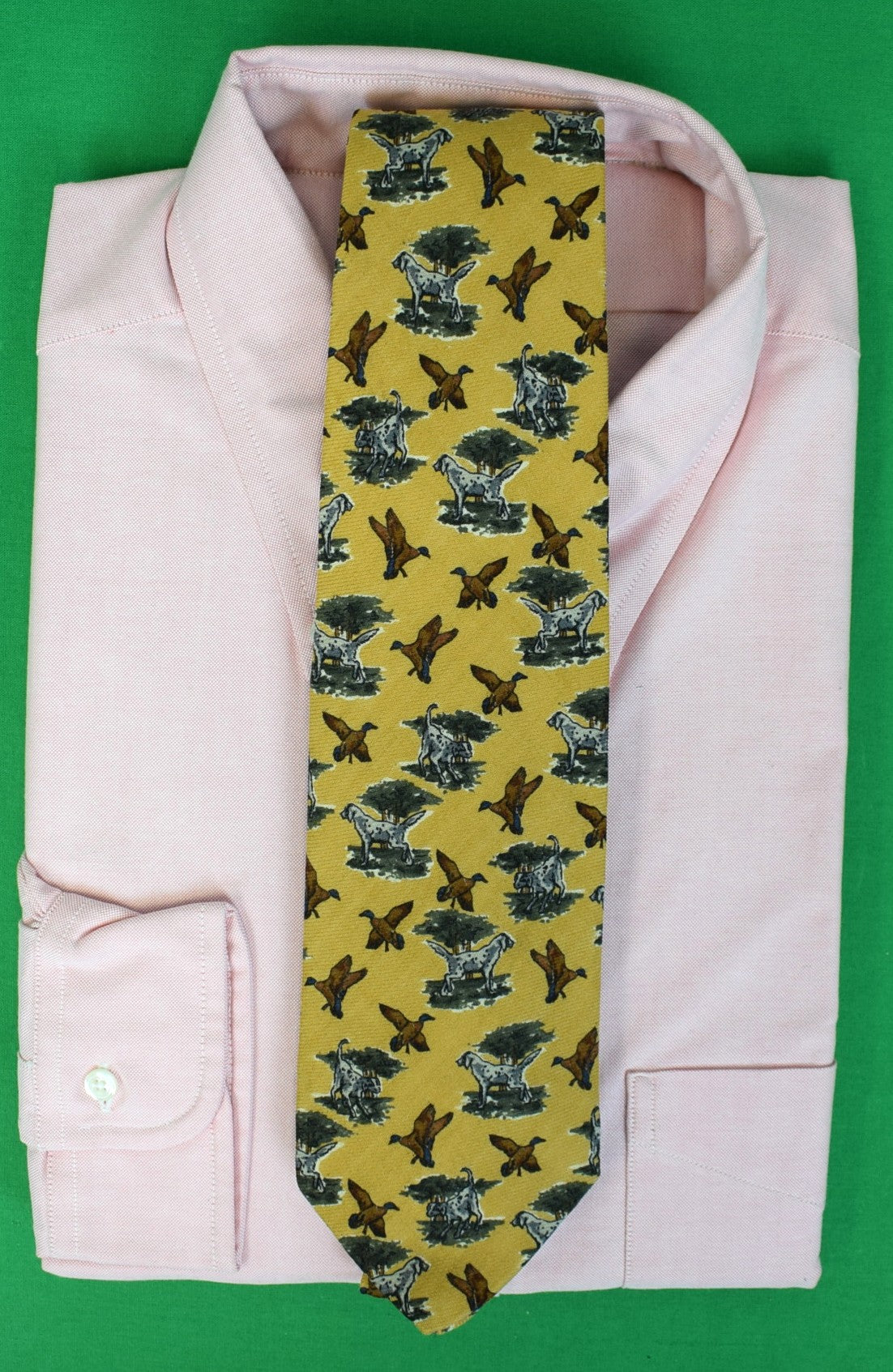Brooks Brothers Camel Wool Challis Club Tie w/ Hunting Dog/ Mallard Duck Print