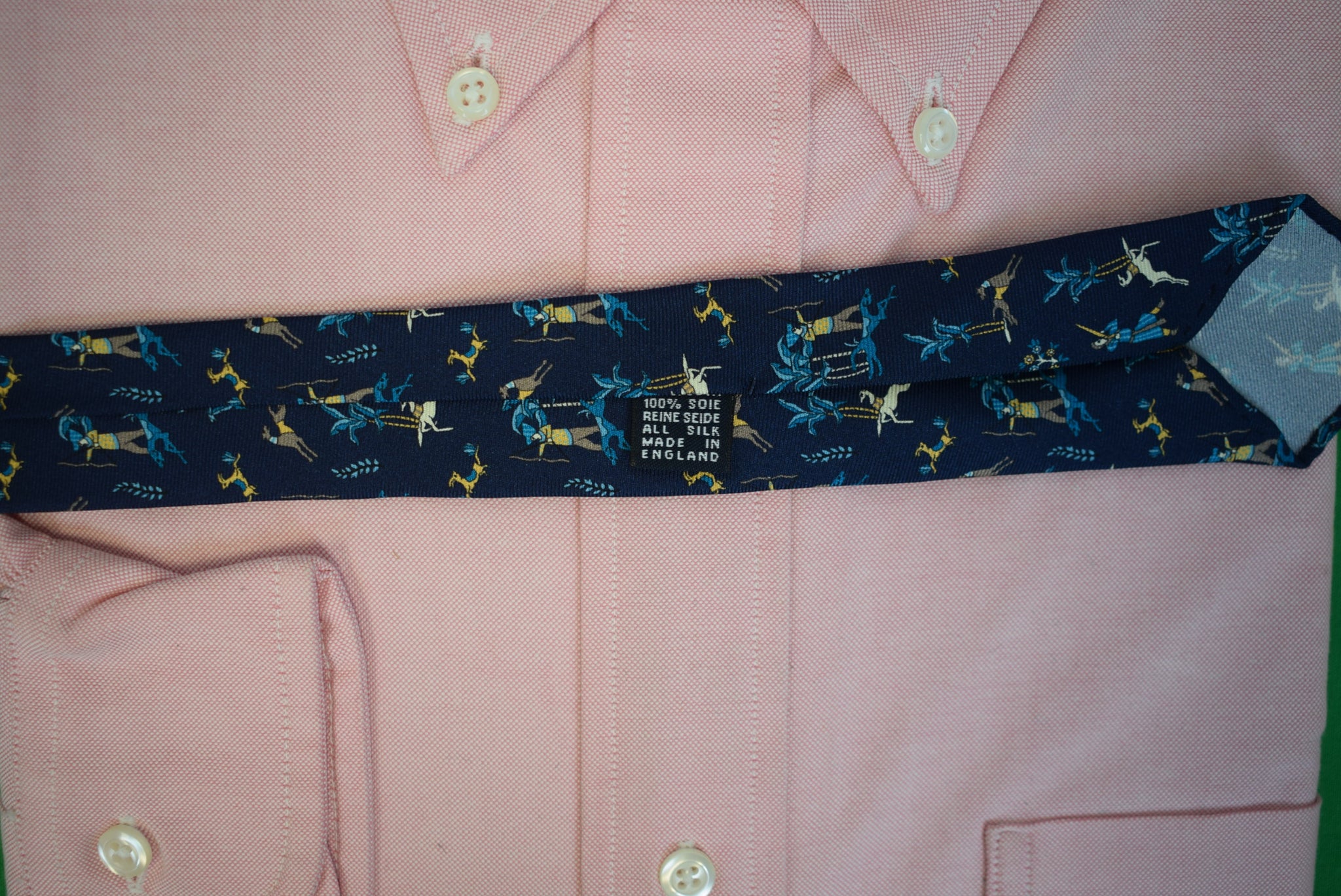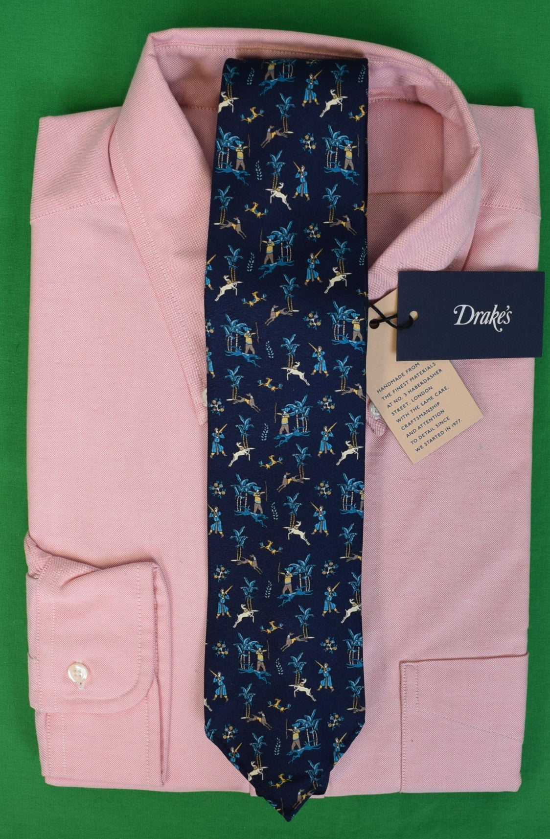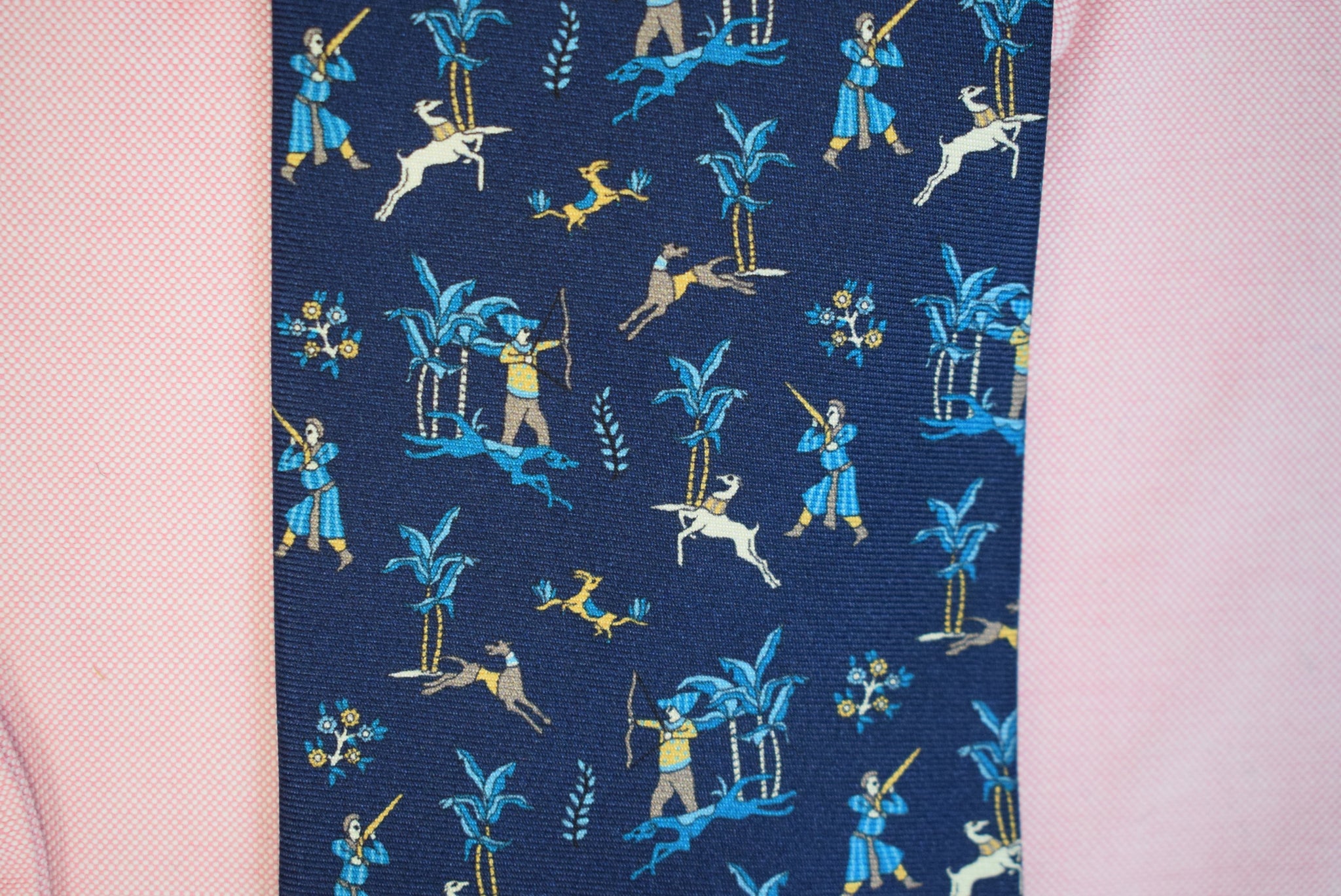 Drake's London Blue Stag Mughal Huntsman English Navy Silk Club Tie
