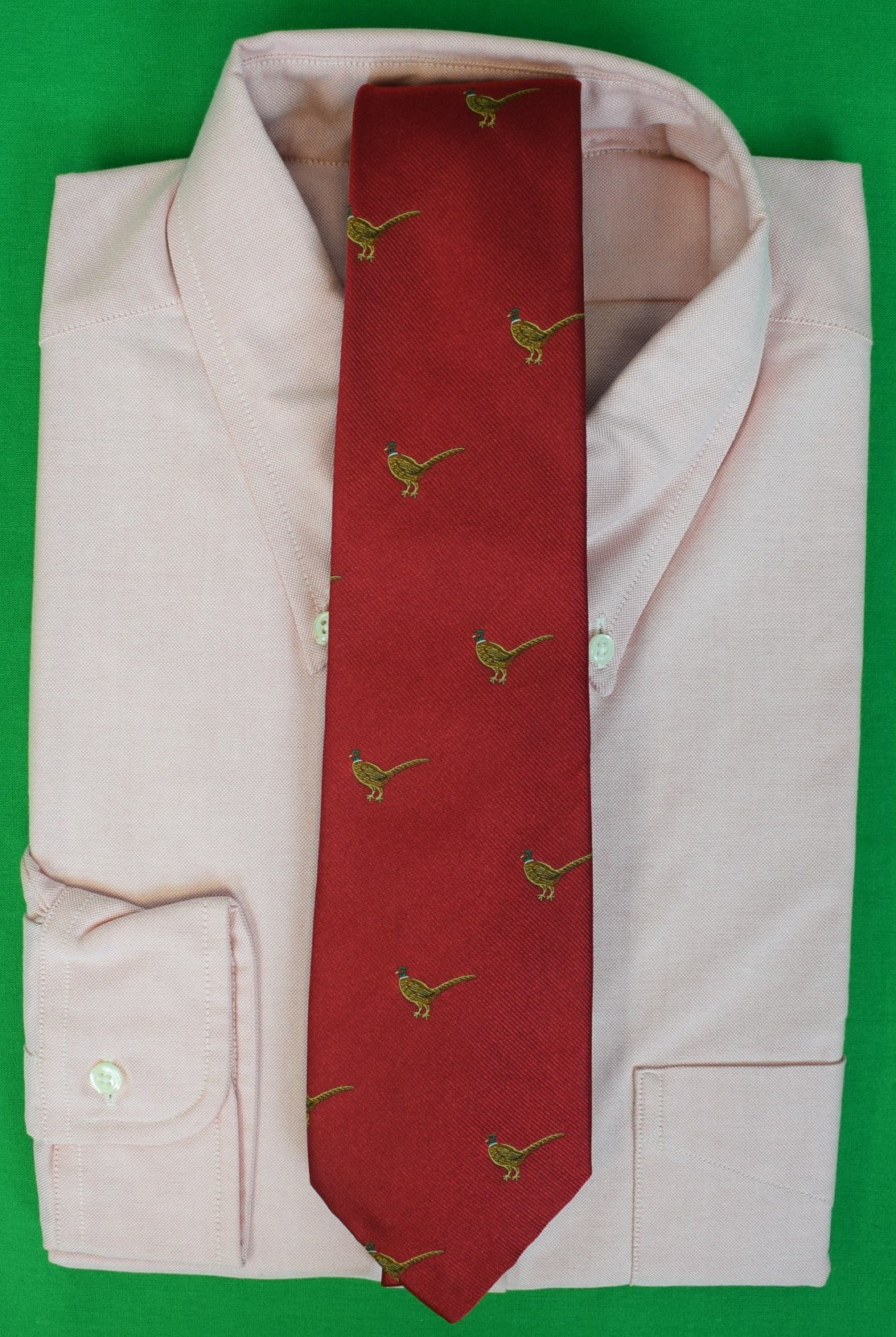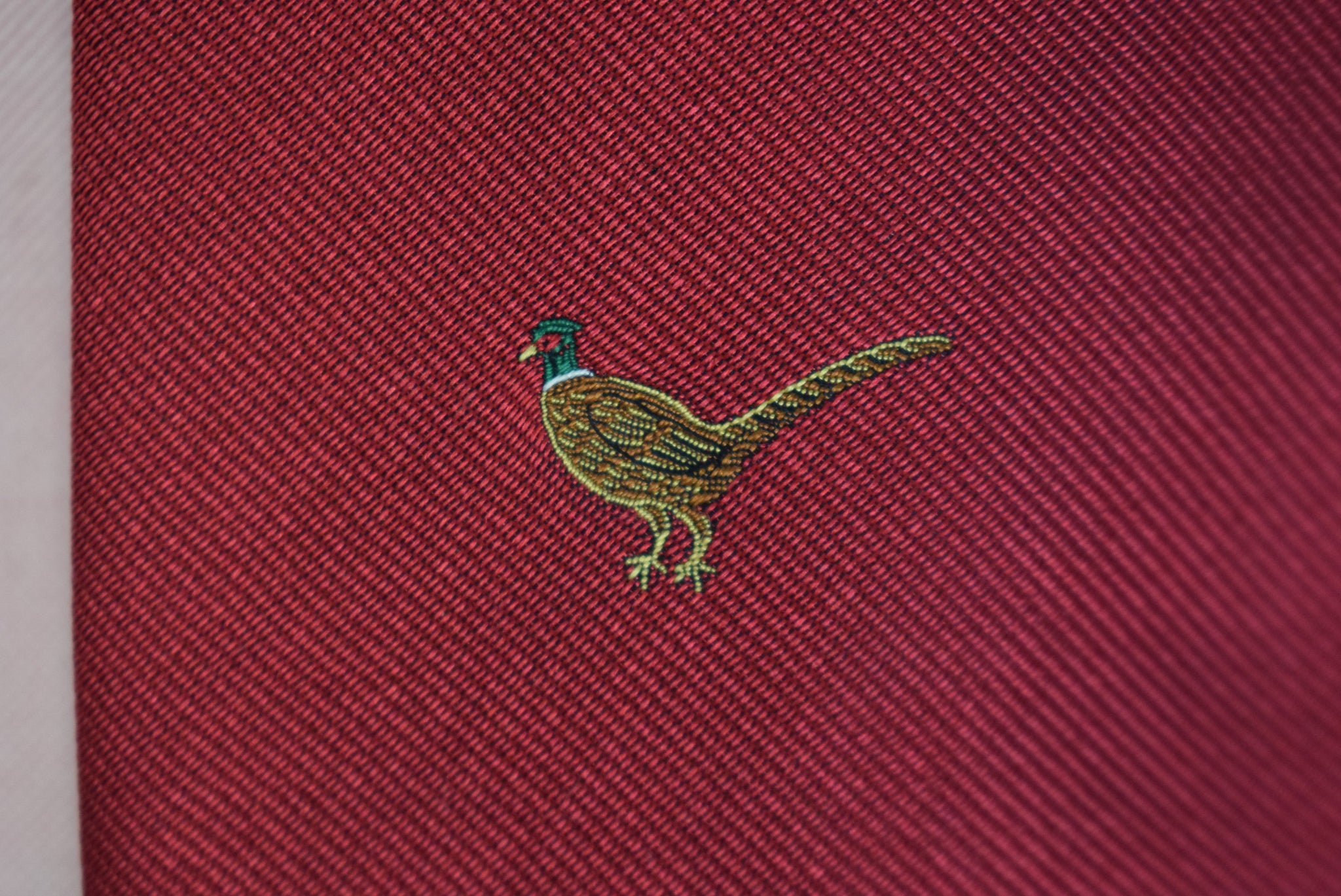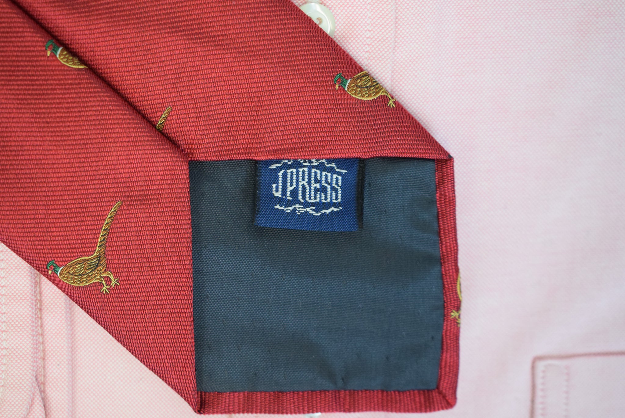 "J. Press Red Irish Silk Pheasant Print Club Tie"