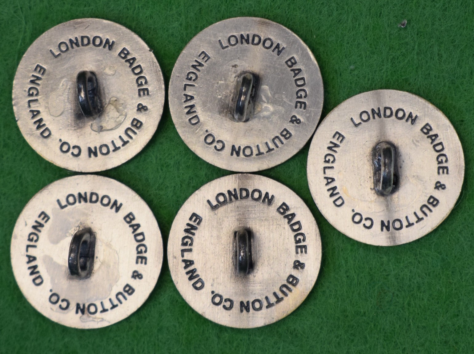 Set x 5 London Badge X'd Rifle/ "Fly Rod Pewter Blazer Buttons"