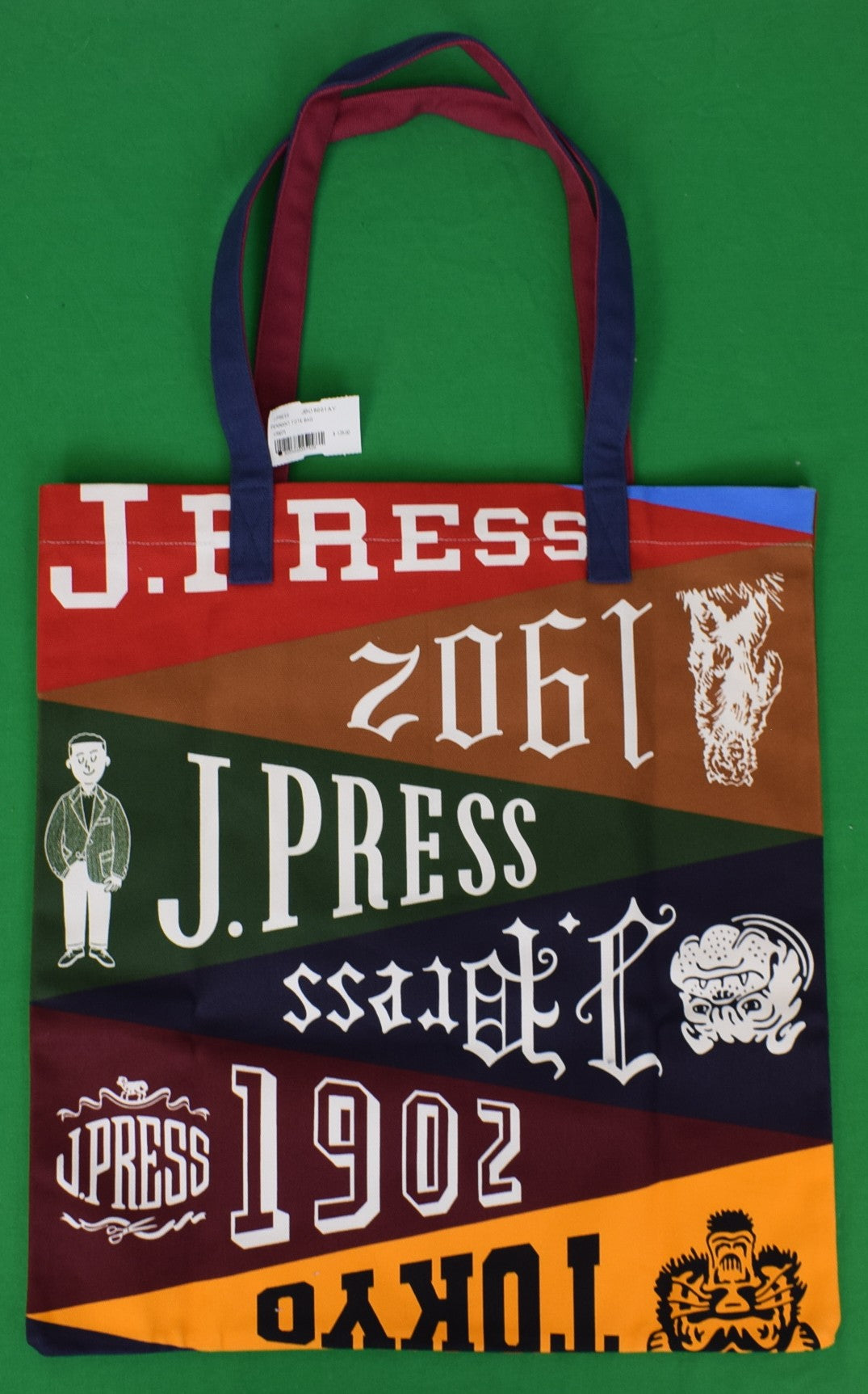 A trip through J. Press history featuring our key dates, places, and iconography on a printed canvas tote bag.