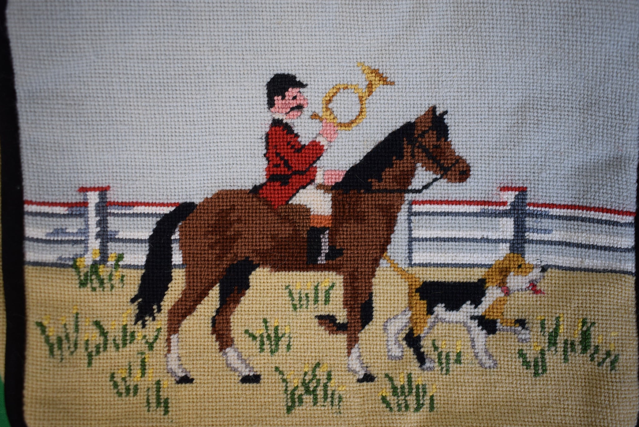 "Hand Needlepoint Foxhunting Bag w/ Shoulder Strap"