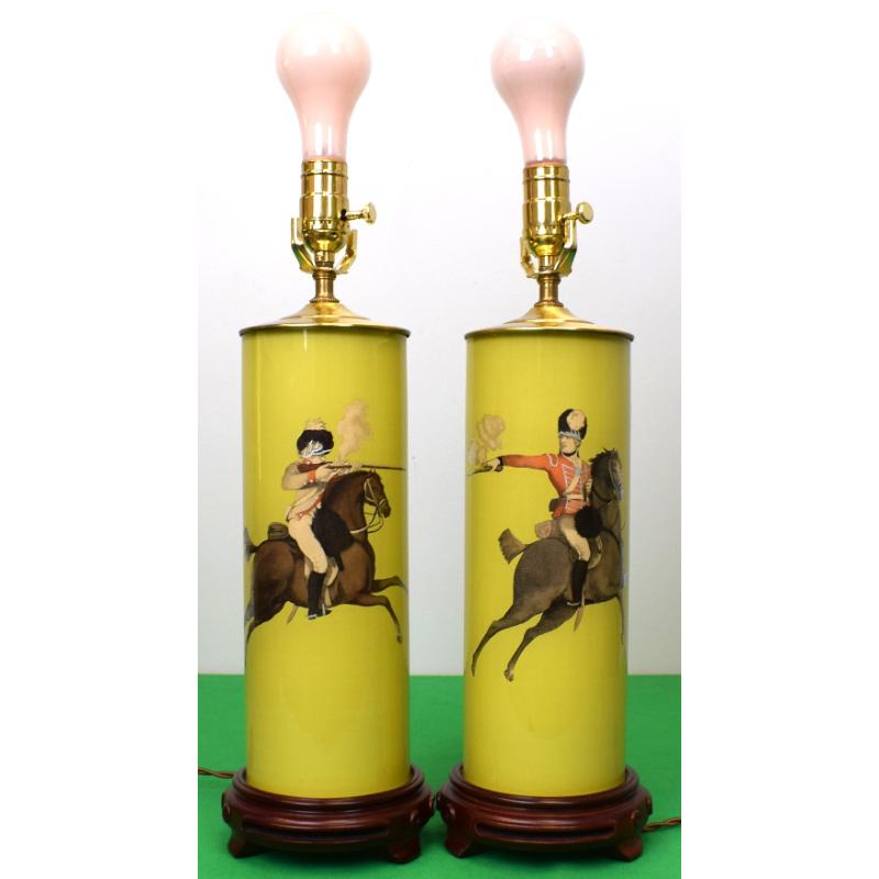 "Set x 2 Equestrian Cavalry Decoupage Lamps" Provenance: The Susie Hilfiger Collection
