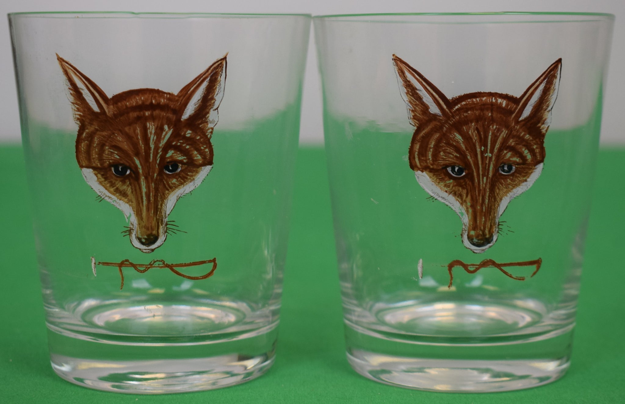 "Pair x Cyril Gorainoff Hand Painted Fox Mask w/ Riding Crop Double Old Fashioned Cocktail Glasses"