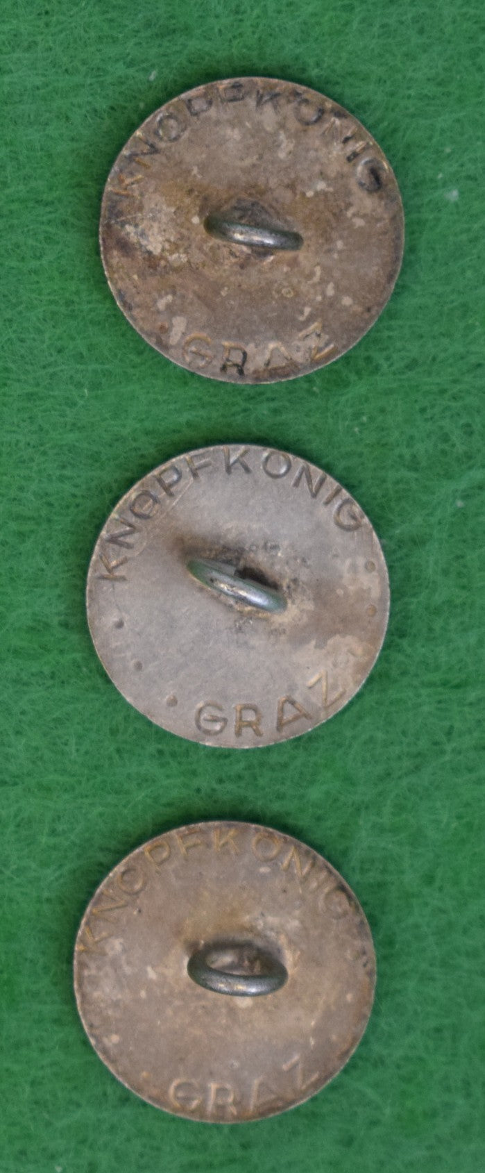 Set x 3 Knopf Konig Graz Austria Silver Fox Mask Vest Buttons