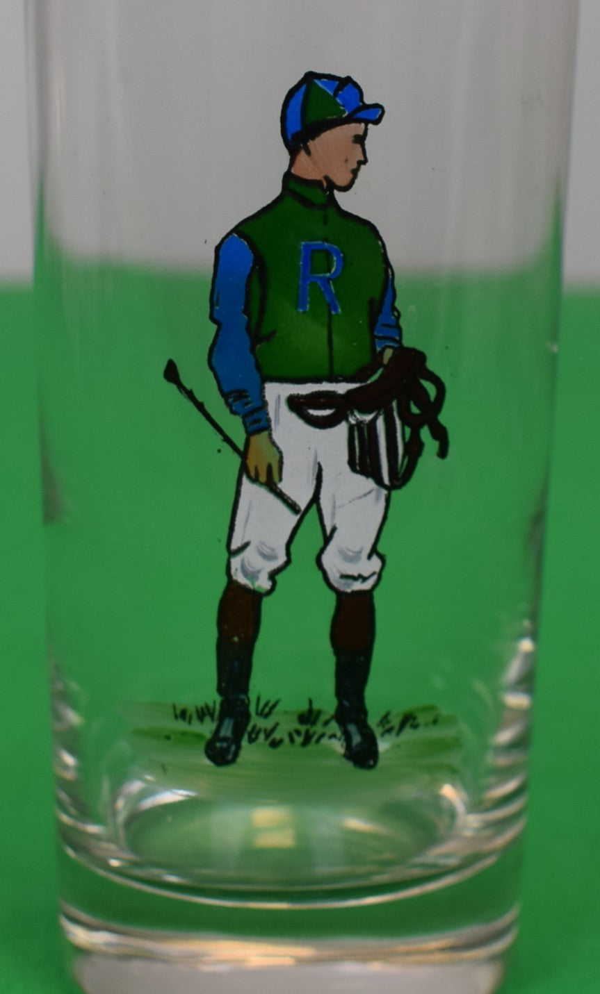 Set x 4 Hand-Painted Blue/ Green Jockey Highball Glasses