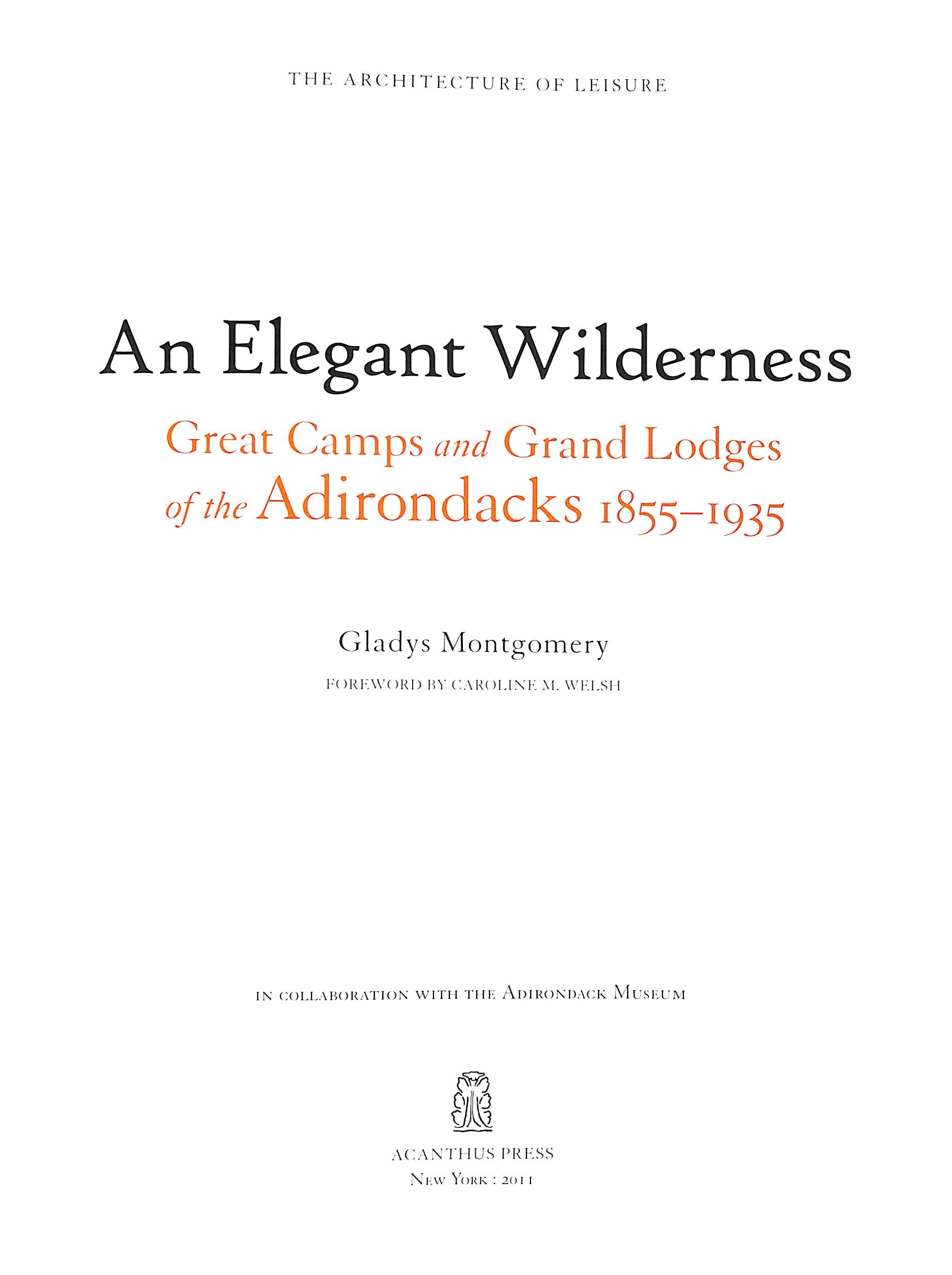 "An Elegant Wilderness: Great Camps And Grand Lodges Of The Adirondacks 1855-1935" 2011 MONTGOMERY, Gladys