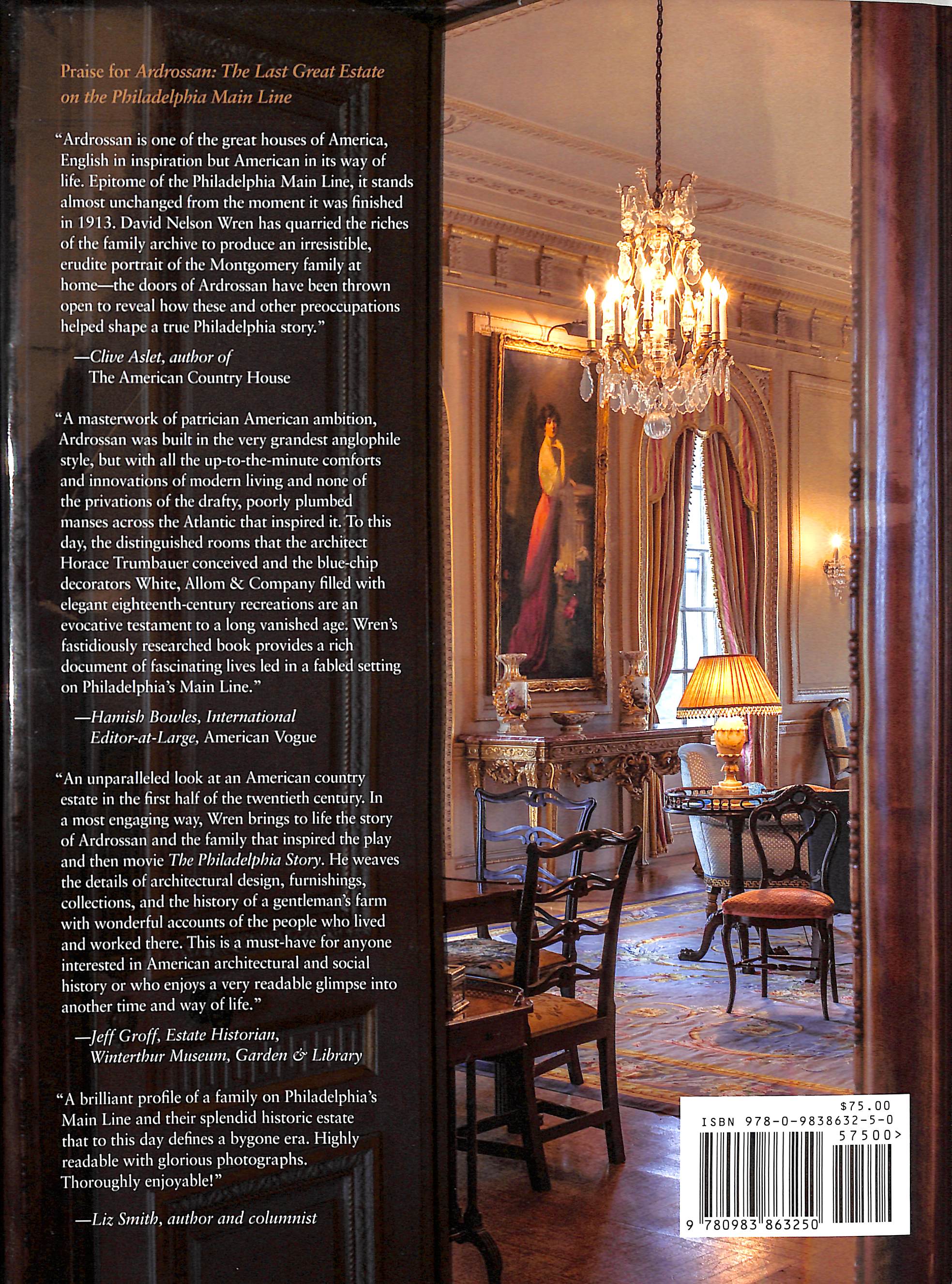 A unique and fascinating chronicle of the construction and furnishing of an early 20th-century country house, vividly brought to life by letters from the family archive. Never-before-published drawings from Horace Trumbauer's architectural office, including the original and revised plans for all three floors, drawings of interior finishes and exterior details related to the main residence, as well as designs for other projects on the estate, including a never-built gate lodge, beautifully represented in Trumbauer's colored rendering. More than 400 historic and newly commissioned images and two 8-page gatefolds. An intimate portrait that captures the elegant lifestyle of the Montgomery's and the majesty of their beloved home and estate. A richly detailed history of the baronial splendor of the Philadelphia Main Line estate Ardrossan and of the Montgomery family who built it. Real-life American counterparts of the Grantham's of Downton Abbey, the Montgomery's are best known as the family on which Philip Barry based his 1939 play, The Philadelphia Story, featuring Katharine Hepburn, who also starred in the later Hollywood film of the same name. The Montgomery's entertained in the grand manner, hosting fox hunts and dinner dances. Guests included diplomat W. Averell Harriman; first lady Edith Roosevelt, Mrs. Montgomery's cousin; and famed vaudevillians the Duncan Sisters. At its height, the magnificent estate encompassed roughly 760 acres of rolling Pennsylvania hills. The Montgomery's' home, still owned by the family, stands as a glorious reminder of the halcyon days of the Gilded Age. The fifty-room Georgian-style manor house was designed in 1911 by Horace Trumbauer, one of America's foremost classical architects who designed the Elms in Newport, Rhode Island, for E. J. Berwind, and Whitemarsh Hall, Trumbauer's masterpiece built for the Stotesbury's outside of Philadelphia. The first-floor rooms were decorated by the London-based firm of White, Allom & Company. Essentially unaltered since 1913, these rooms feature the family's art collection, including ancestral portraits by Thomas Sully and hunt scenes and landscapes on or near Ardrossan by Charles Morris Young. The book also chronicles the history of the family's commercial dairy and prized herd of Ayrshires. This beautifully illustrated book features never-before-published architectural drawings from Trumbauer's office and interior photographs shot by Mattie E. Hewitt in the 1930s, as well as family snapshots and images by celebrated photographers Cecil Beaton and Toni Frissell commissioned by Vogue, Country Life, and Town & Country., A richly detailed history of the baronial splendor of the Philadelphia Main Line estate Ardrossan and of the Montgomery family who built it. Real-life American counterparts of the Grantham's of Downton Abbey, the Montgomery's are best known as the family on which Philip Barry based his 1939 play, The Philadelphia Story, featuring Katharine Hepburn who also starred in the later Hollywood film. The Montgomery's entertained in the grand manner, hosting fox hunts and dinner dances. Guests included diplomat W. Averell Harriman; First Lady Edith Roosevelt; and famed vaudevillians the Duncan sisters. The magnificent estate, still owned by the family, encompassed roughly 760 acres at its height. Located at its center is a magnificent 50-room Georgian style manor house. Essentially unaltered since 1913, the family home designed in 1911 by Horace Trumbauer, one of America's foremost classical architects, stands as a glorious reminder of the halcyon days of the Gilded Age. The first-floor rooms, decorated by the London-based firm of White, Allom, & Company, feature the family's art collection, including works by Gilbert Stuart and Charles Morris Young. The book also chronicles the history of the family's commercial dairy and prized herd of Ayrshires. Features never-before-published architectural drawings from Horace Trumbauer's office and interior photographs shot by Mattie E. Hewitt in the 1930s; as well as family snapshots and images by celebrated photographers Cecil Beaton and Toni Frissell commissioned by Vogue and Country Life. This intimate portrait captures the elegant lifestyle of the Montgomery's and the majesty of their beloved home and estate, Ardrossan