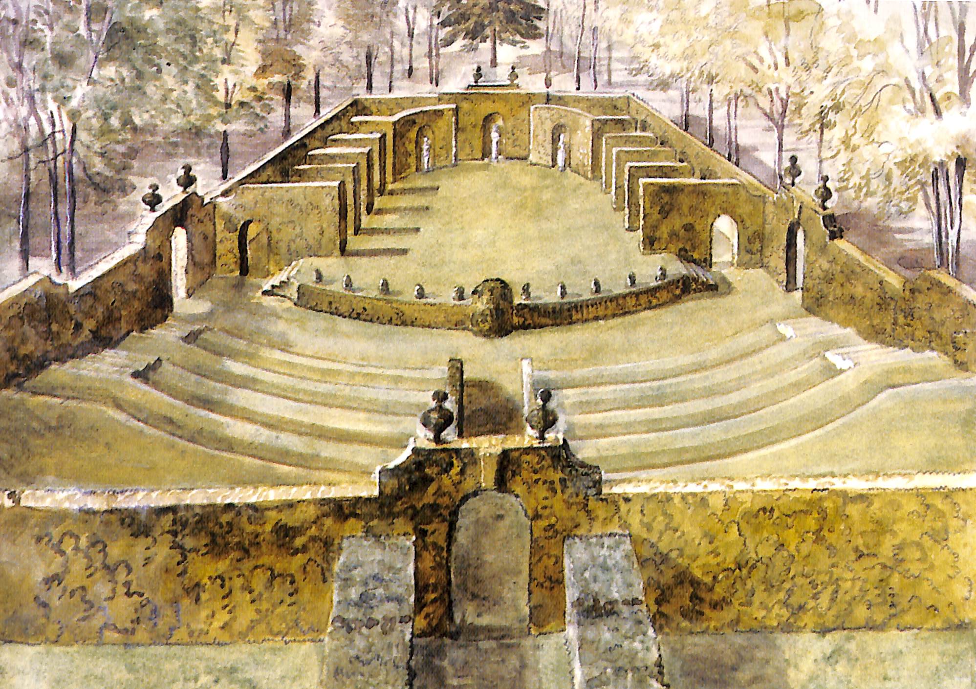 As he did for the interiors of the château, Charles de Beistegui asked Alexandre Serebriakoff to create watercolor views of these follies, which are presented in this book.