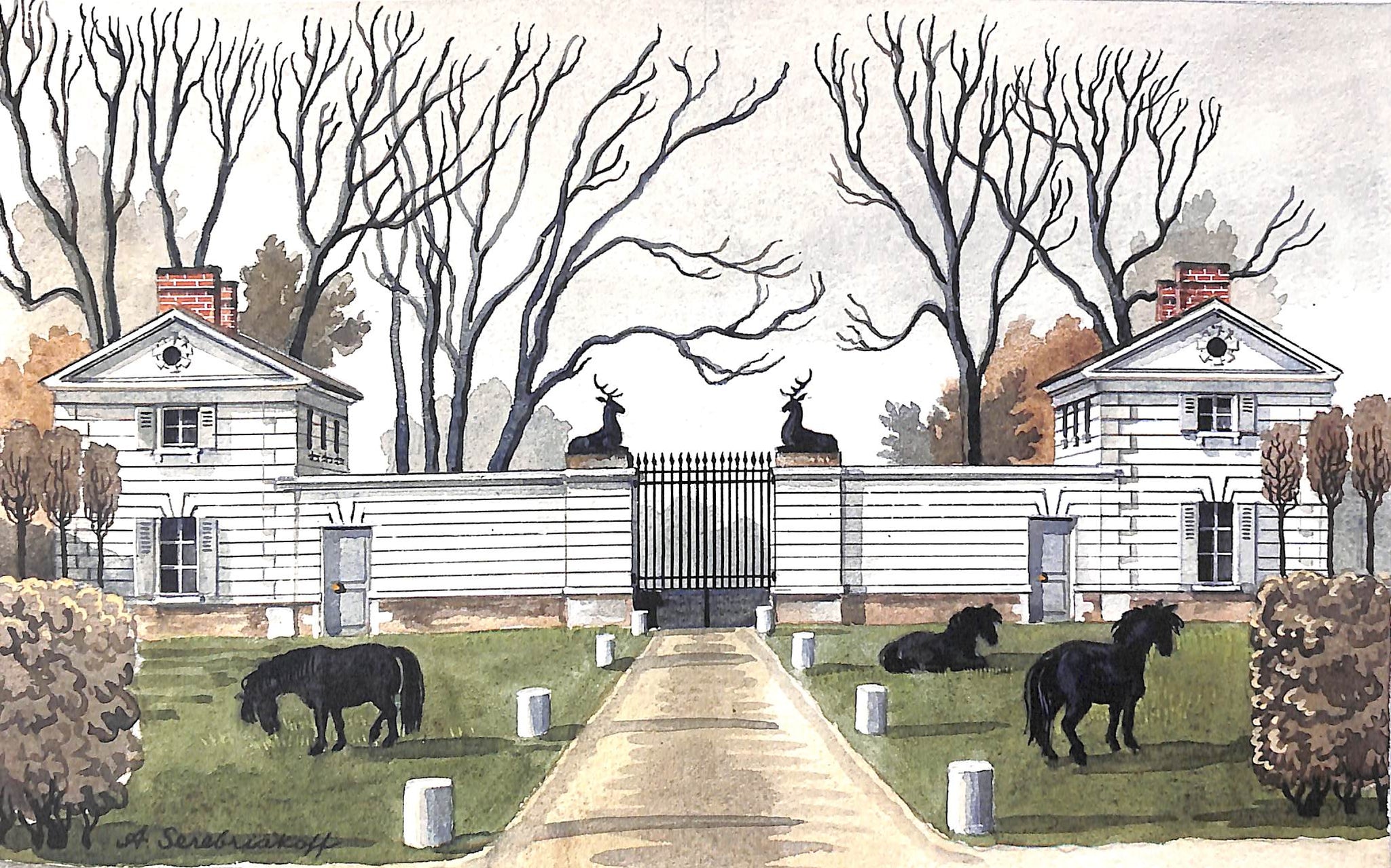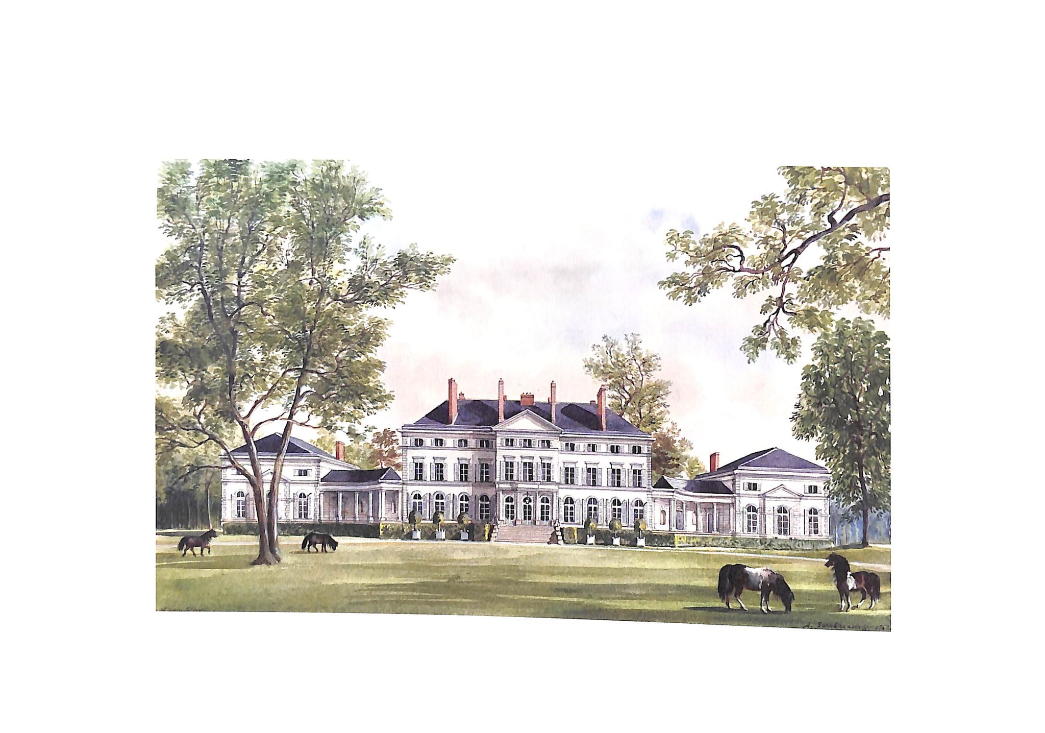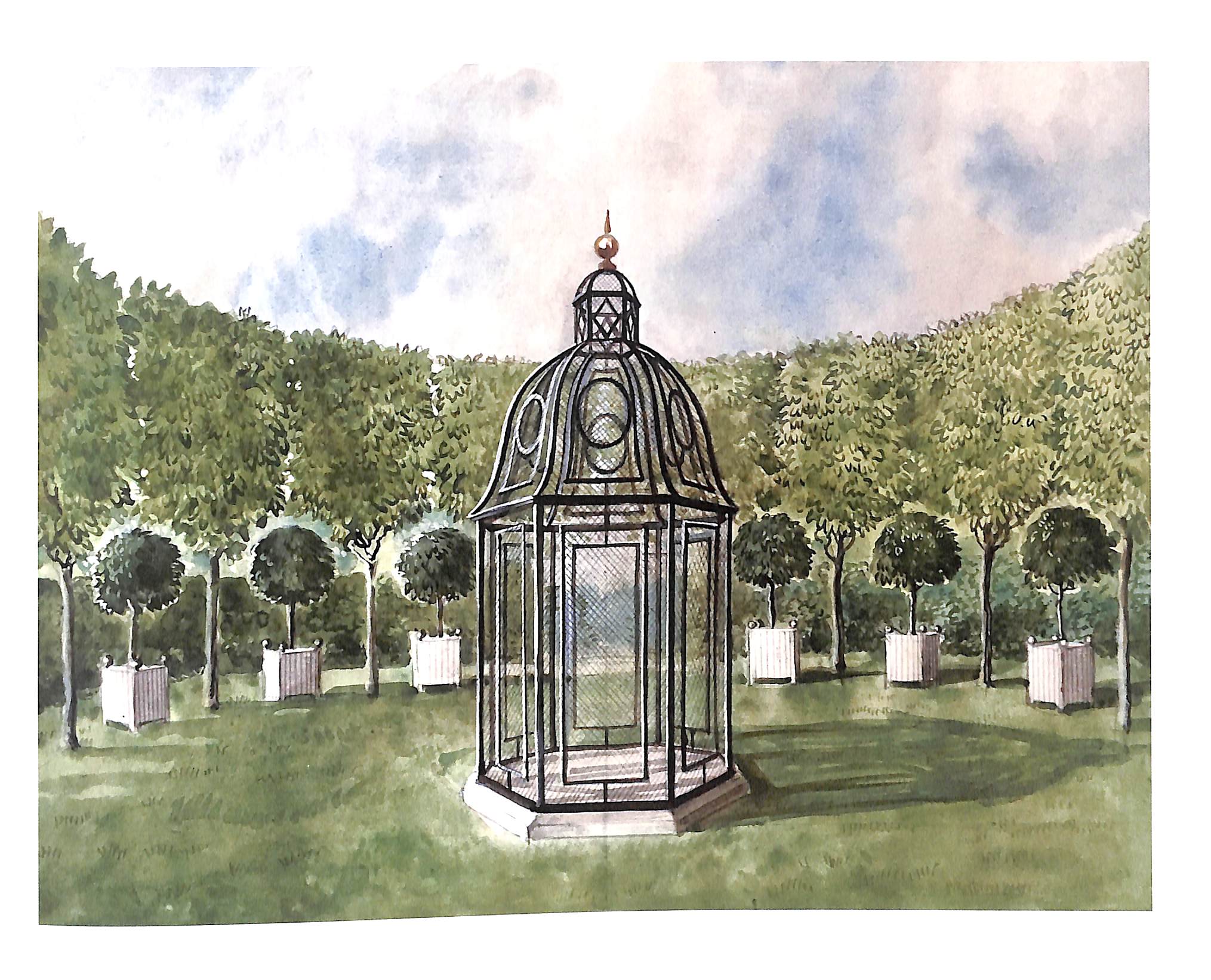 Charles de Beistegui revealed Alexandre Serebriakoff as an exceptional interior painter by commissioning views of Groussay, which today testify to the elegance and refinement of his home. It is sometimes forgotten that his passion for building was not limited to the château he transformed and beautified, altering its façade and adding two wings. Alongside these decorative works, he undertook others in the park, where he had follies constructed in the purest taste of the 18th century. Thus, between 1950 and 1969, the garden became populated with a dozen buildings: a Tartar tent, aviary, Palladian bridge, column, Temple of Love, Chinese pagoda...
