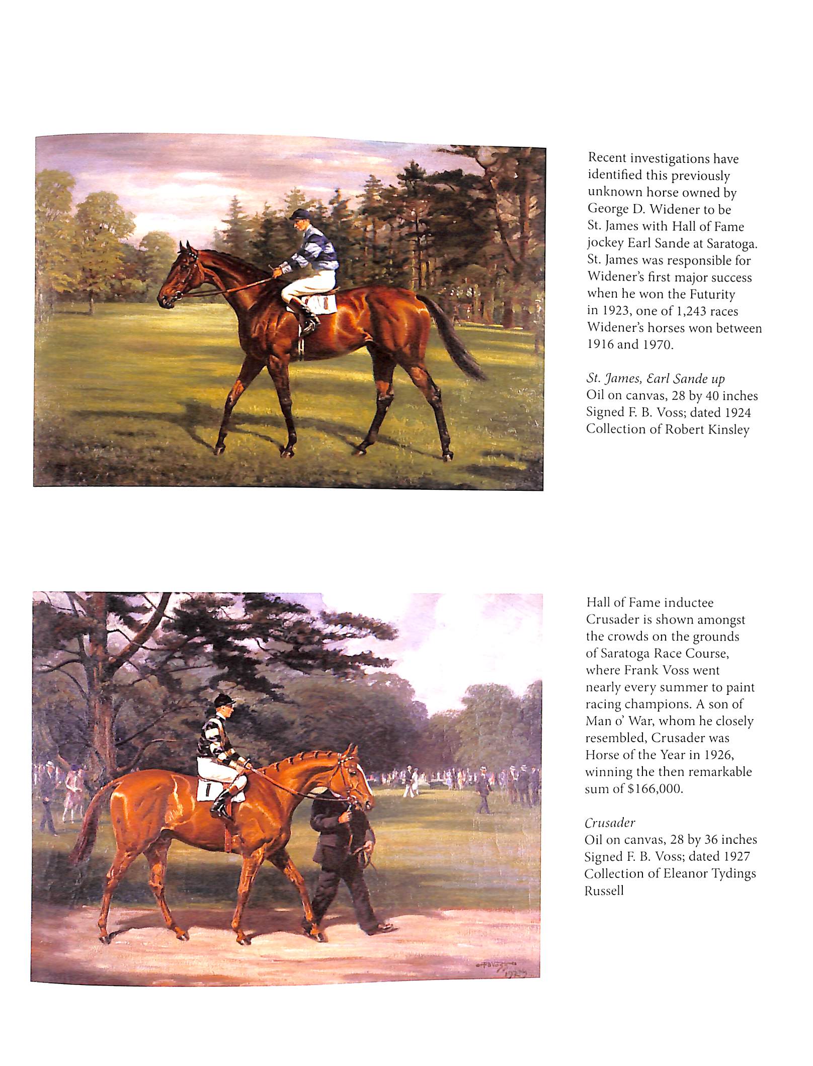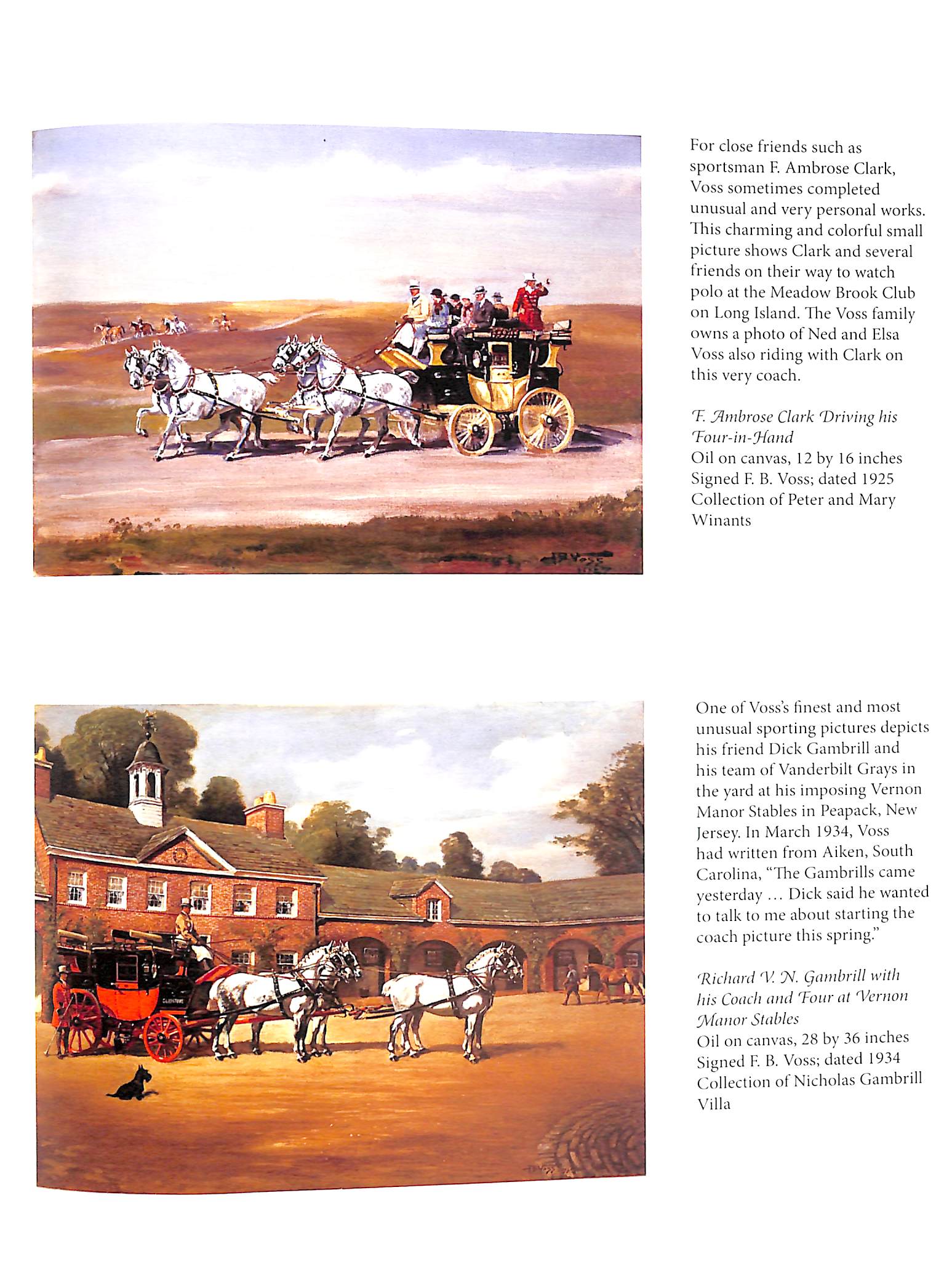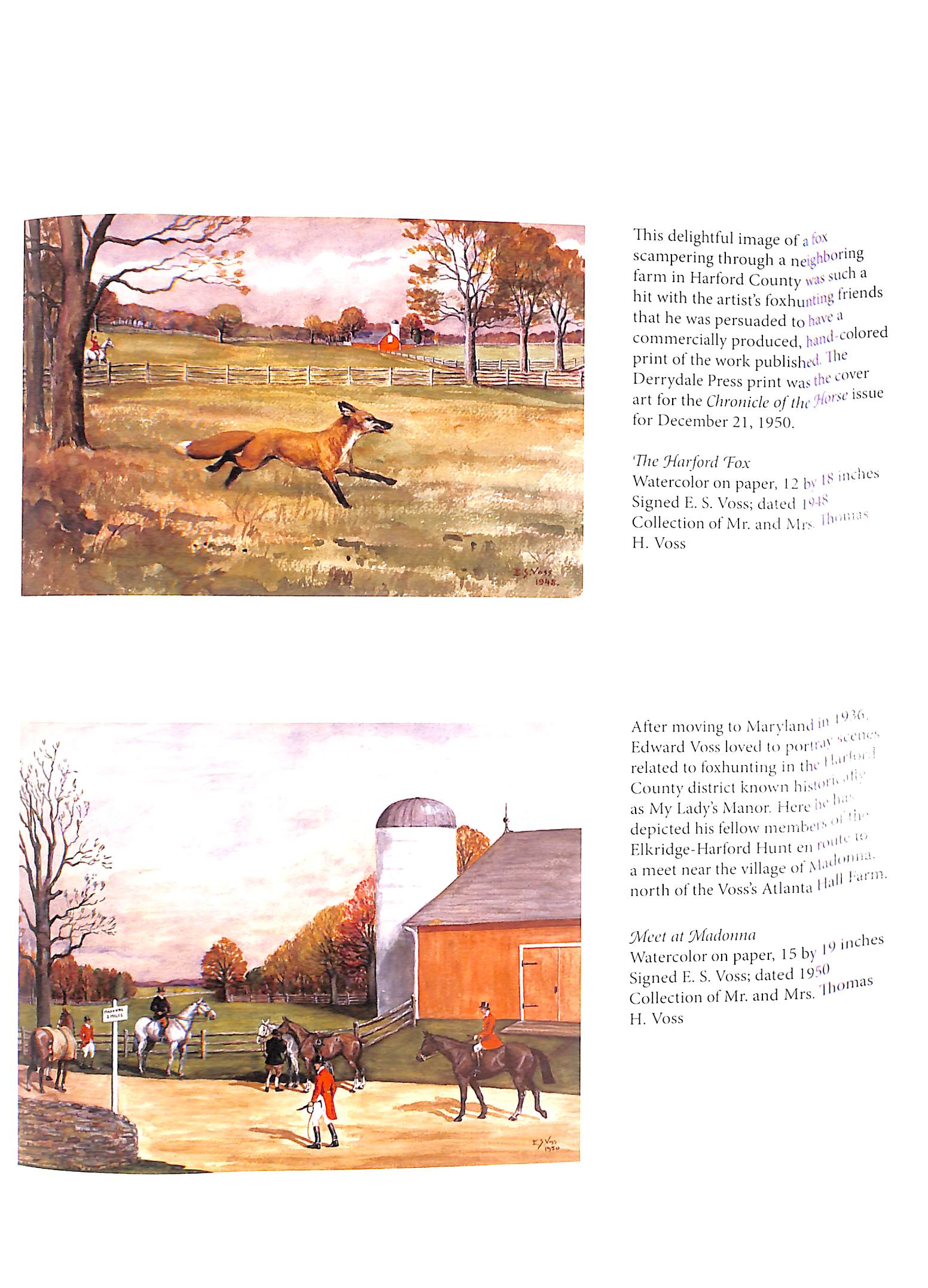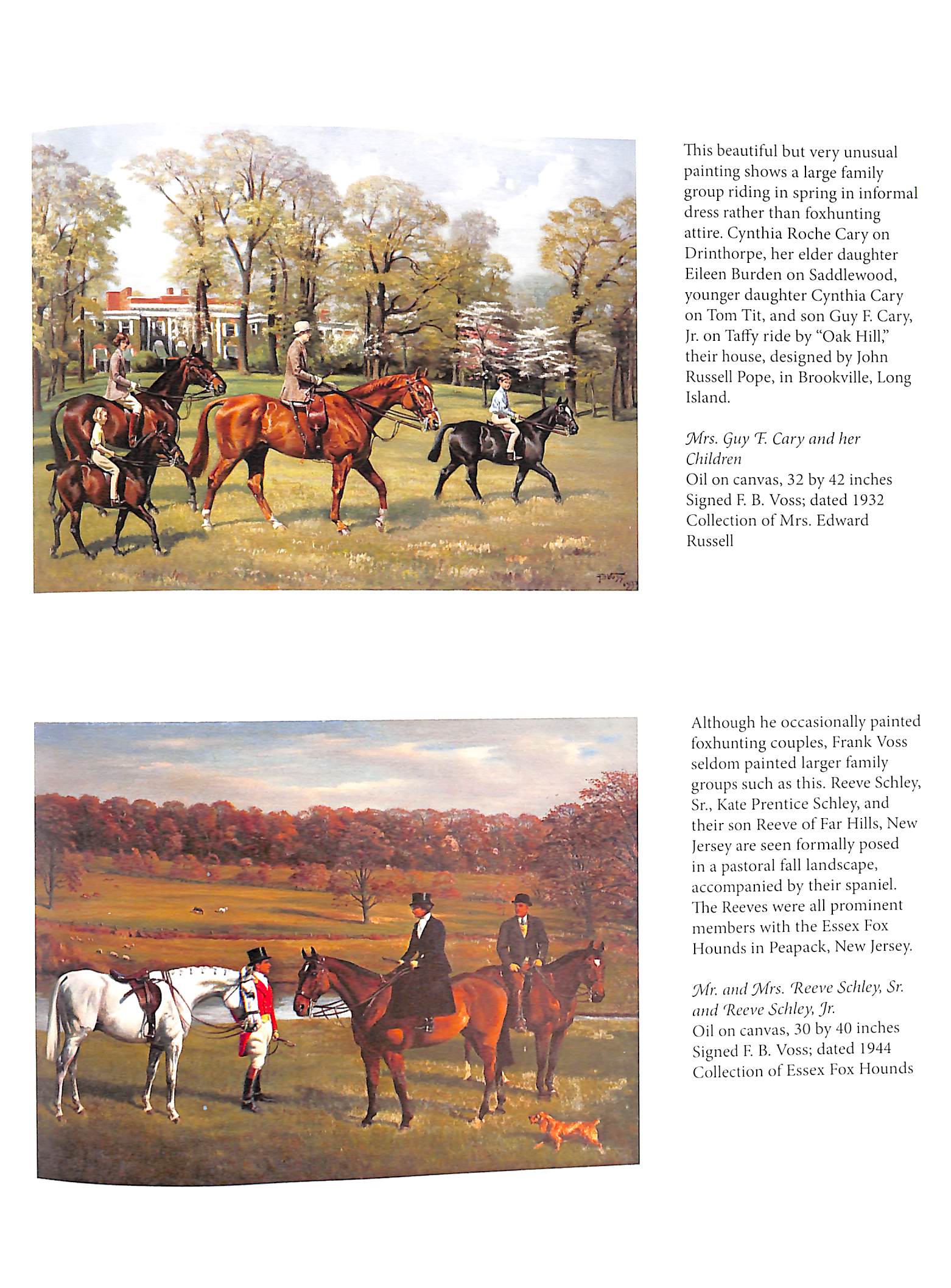 This exhibit features over 85 works of art such as oil paintings, watercolors, pastels, print and sculptures by members of the Voss family. The Voss family were a group of artists who painted American sporting life, including racehorses and hunting horses. The family included Franklin Brooke Voss, Elsa Horne Voss, and Hermann Georg August Voss, an art historian.