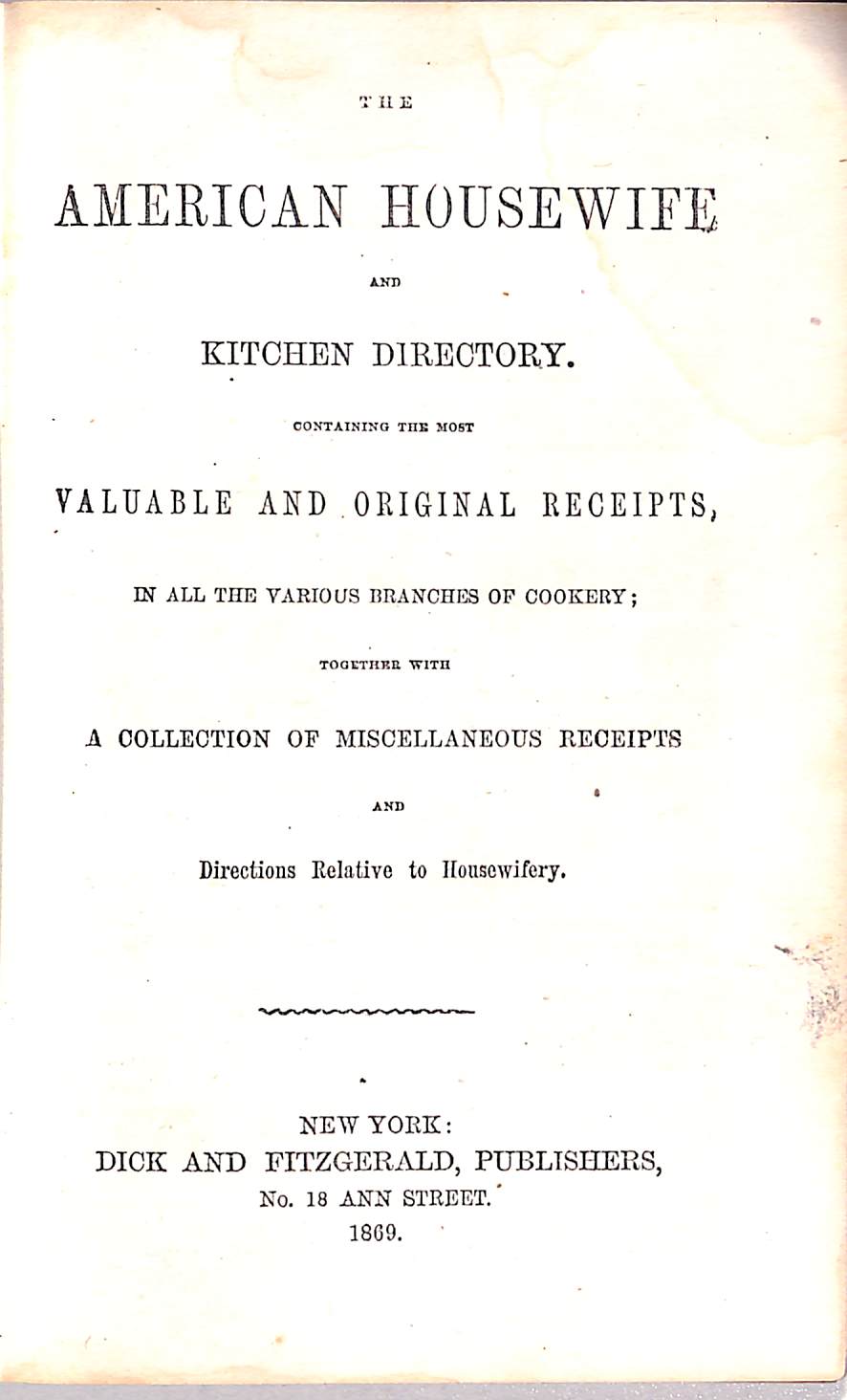 Containing The Most Valuable and Original Receipts, In All the Various Branches of Cookery; Together with a Collection of Miscellaneous Receipts and Directions Relative to Housewifery