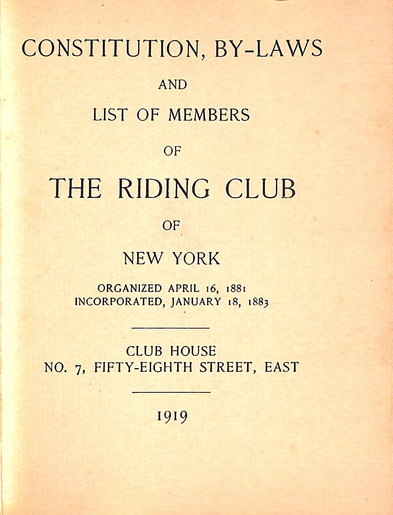 The Fortnightly Review explained that it "owes its existence to the fact that ladies were dependent for their instruction on the riding schools, which were not always as exclusive as might be desired. So a great many of the best known men in New York clubbed together and bought property in Fifty-eighth Street, where they put up a club-house at a cost of $60,000." (The price would be in the neighborhood of $1.5 million today.)