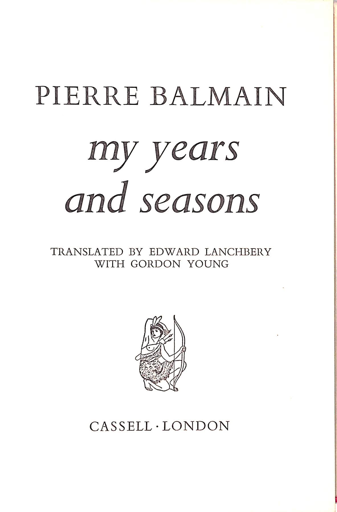 The autobiography of the French fashion designer Pierre Balmain (1914-1982). The memoir covers Balmain's upbringing, his first forays into fashion, his time at Lelong with Christian Dior, the establishment and successes of the Balmain couture house and his life outside of the business.