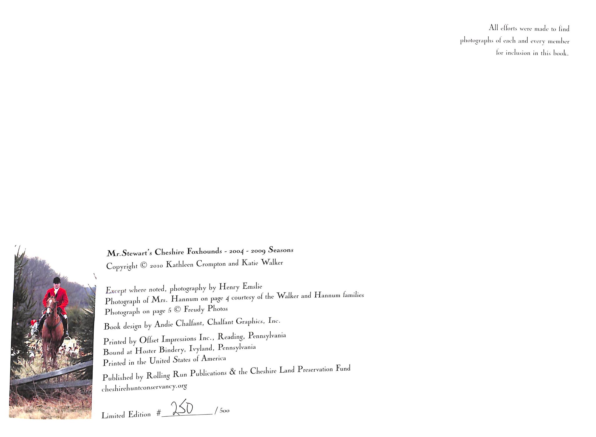An account of the 2004-2009 foxhunting and equestrian seasons of the Cheshire Hunt Conservancy, located in Unionville, Pennsylvania.