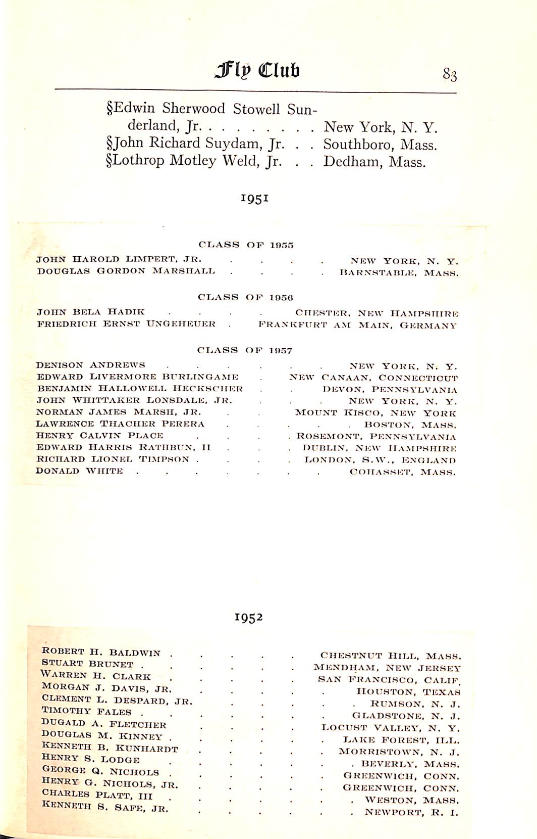 Following is a list of Fly Club members. Fly Club is a final club for male students at Harvard University. Member Initiated into the D.U. Club, which merged with the Fly Club in 1996, is indicated with a *.