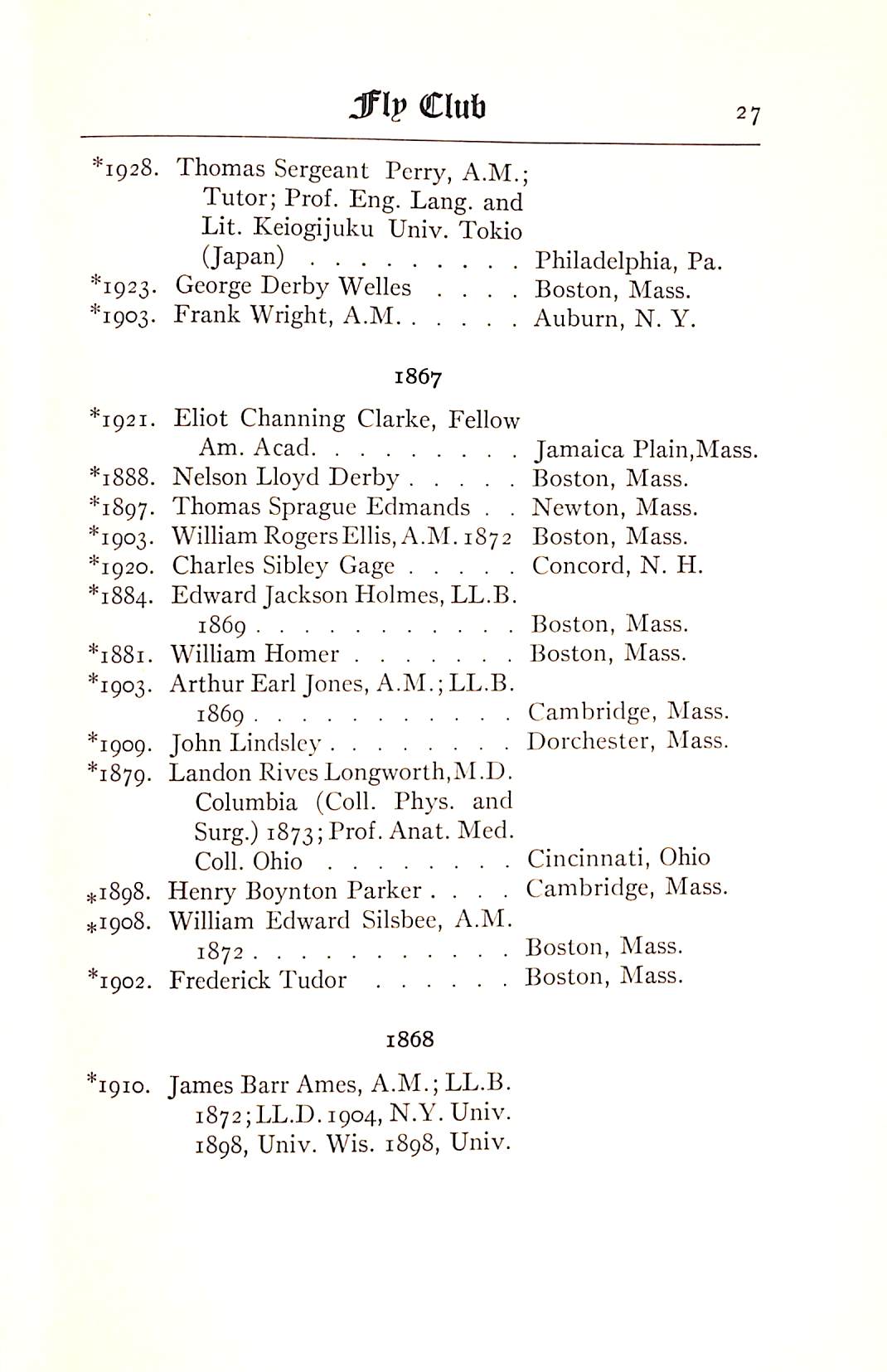Herbert Dudley Hale – Boston and New York City architect who designed the Fly Club's house at Two Holyoke Place.
