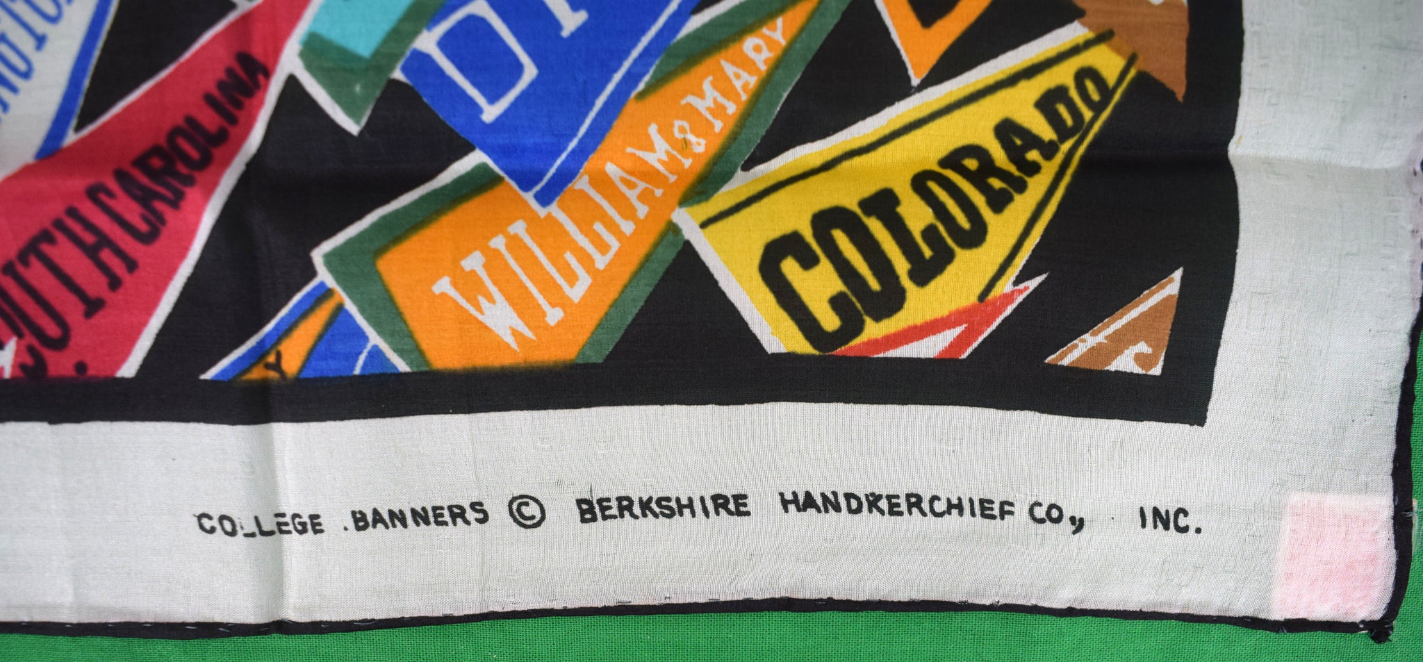 Bottom right corner of scarf marked: "College Banners Berkshire Handkerchief Co. Inc."