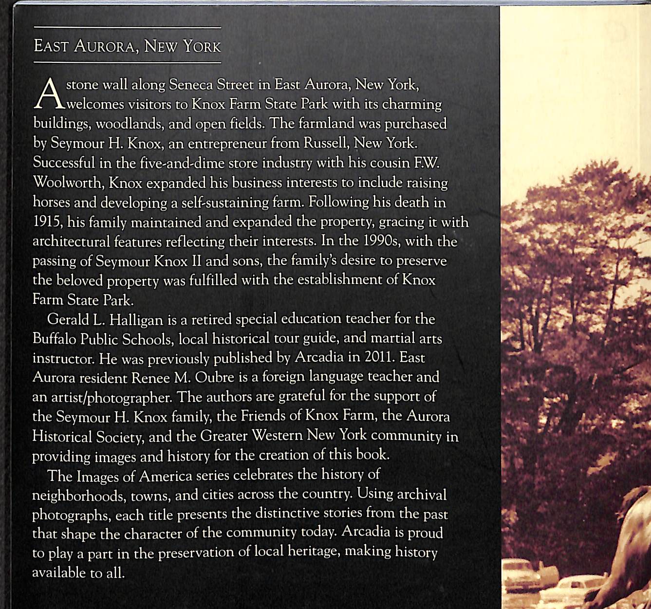 A stone wall along Seneca Street in East Aurora, New York, welcomes visitors to Knox Farm State Park with its charming buildings, woodlands, and open fields. The farmland was purchased by Seymour H. Knox, an entrepreneur from Russell, New York. Successful in the five-and-dime store industry with his cousin F.W. Woolworth, Knox expanded his business interests to include raising horses and developing a self-sustaining farm. Following his death in 1915, his family maintained and expanded the property, gracing it with architectural features reflecting their interests. In the 1990s, with the passing of Seymour Knox II and sons, the family's desire to preserve the beloved property was fulfilled with the establishment of Knox Farm State Park.