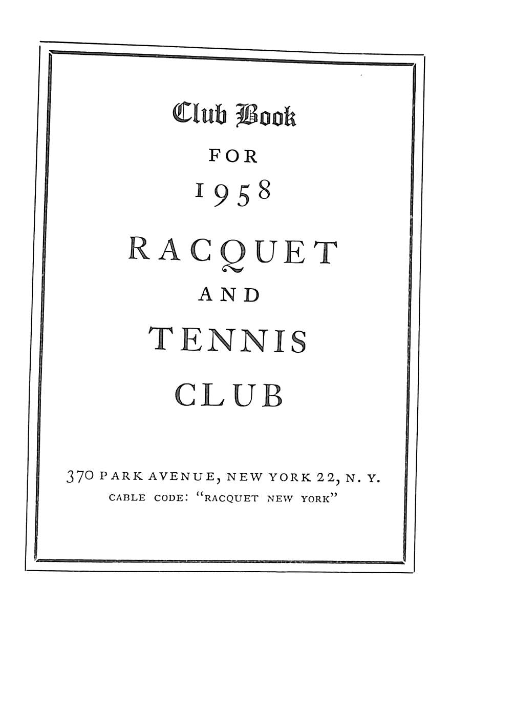 The Racquet Court Club was organized April 28, 1875 and opened May 27, 1876 at 55 West 26th Street. It had two racquets courts, an indoor running track and two bowling alleys. In 1890, it merged into the newly incorporated Racquet and Tennis Club, which planned to build a tennis court, moving the following year to a second, larger clubhouse at 27 West 43rd Street (1891). This second clubhouse had two racquets courts, one fives court and one court tennis court. The Club moved to its third, and current, home in 1918.