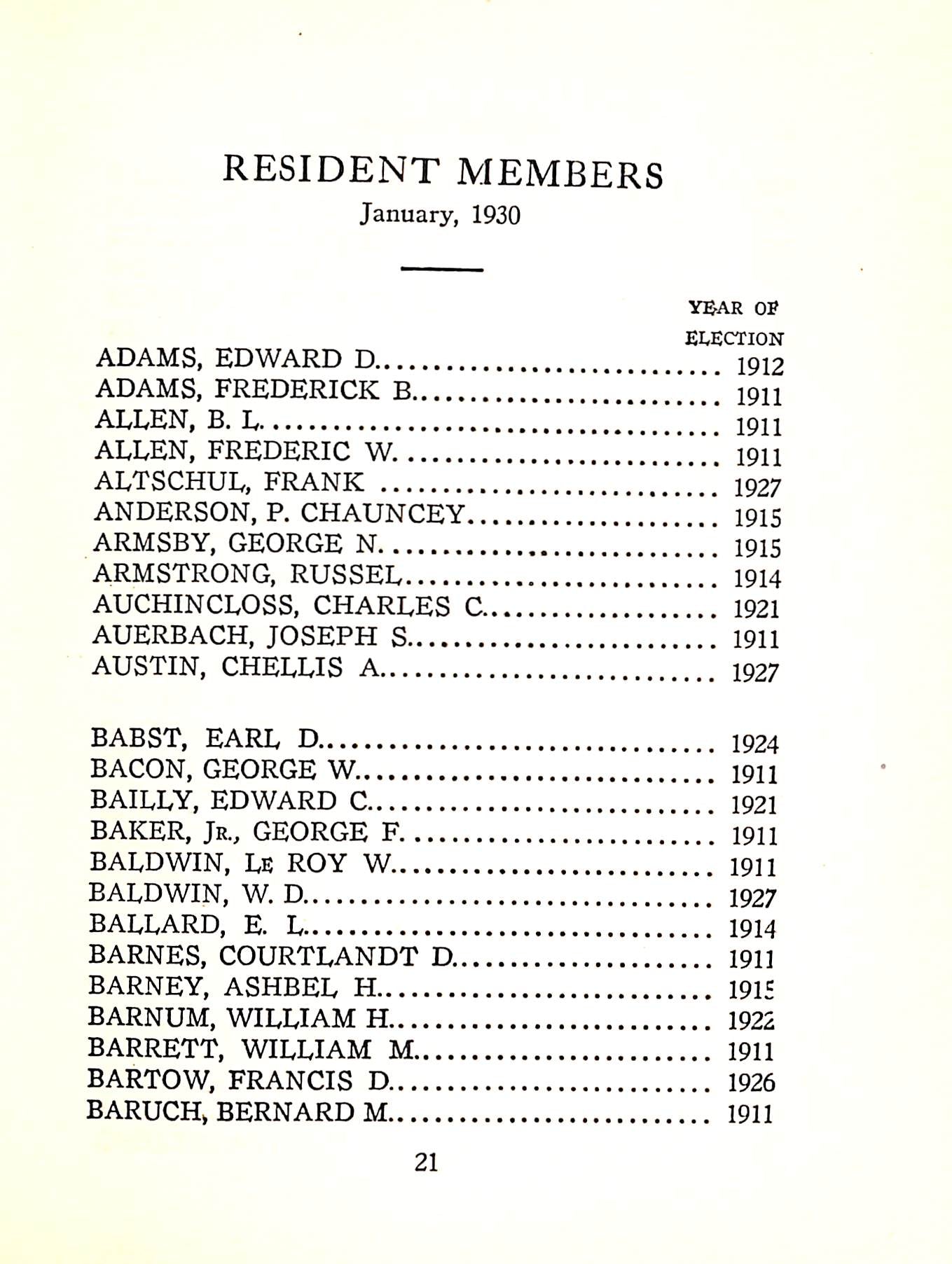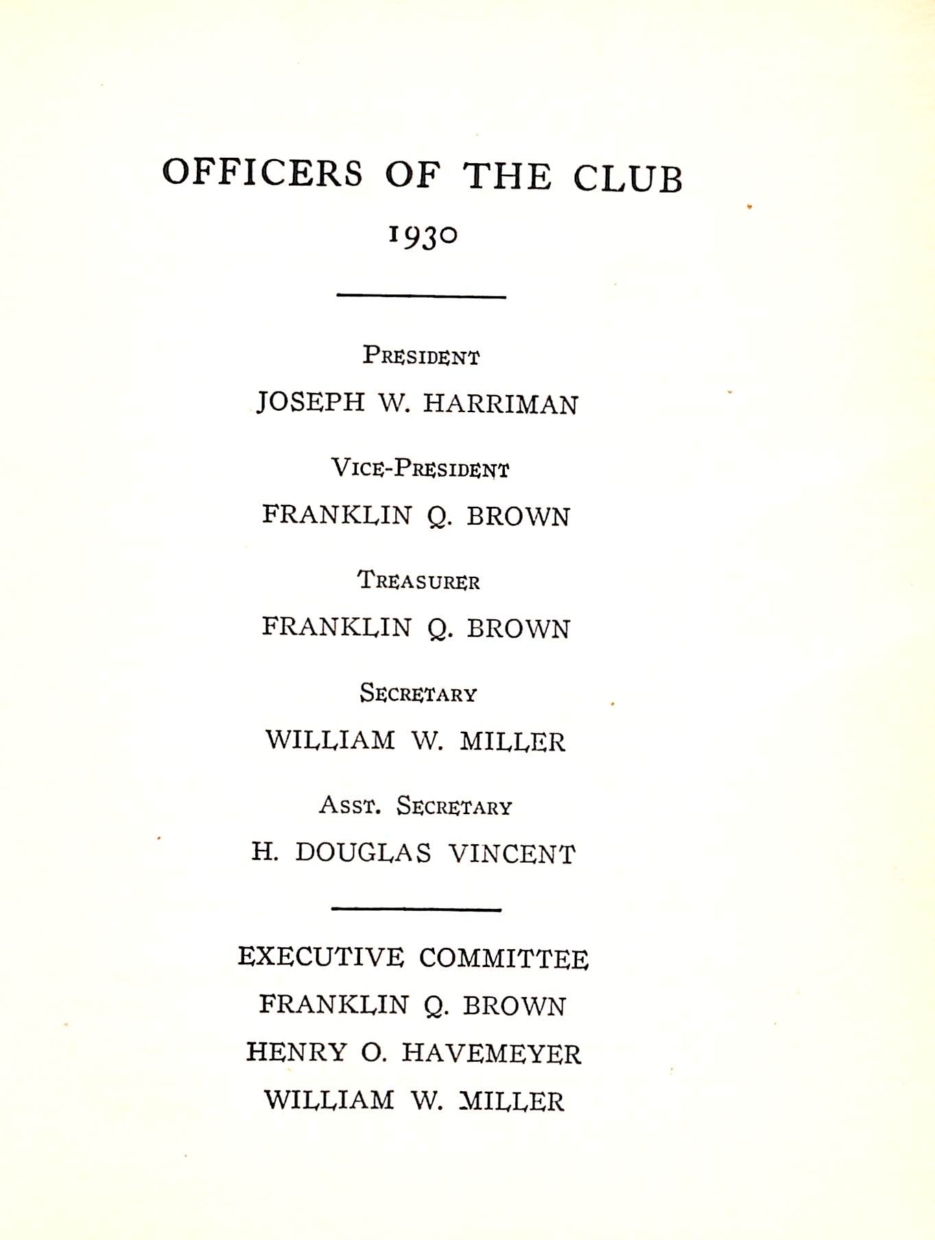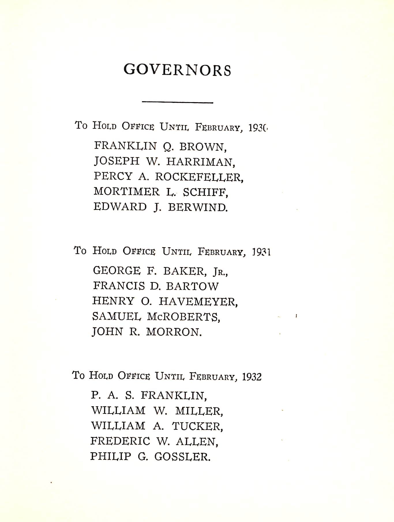 Membership: The membership included financiers and businessmen, and its 1911 board of directors featured well-known names like George F. Baker Jr., J. Horace Harding, and Joseph W. Harriman.