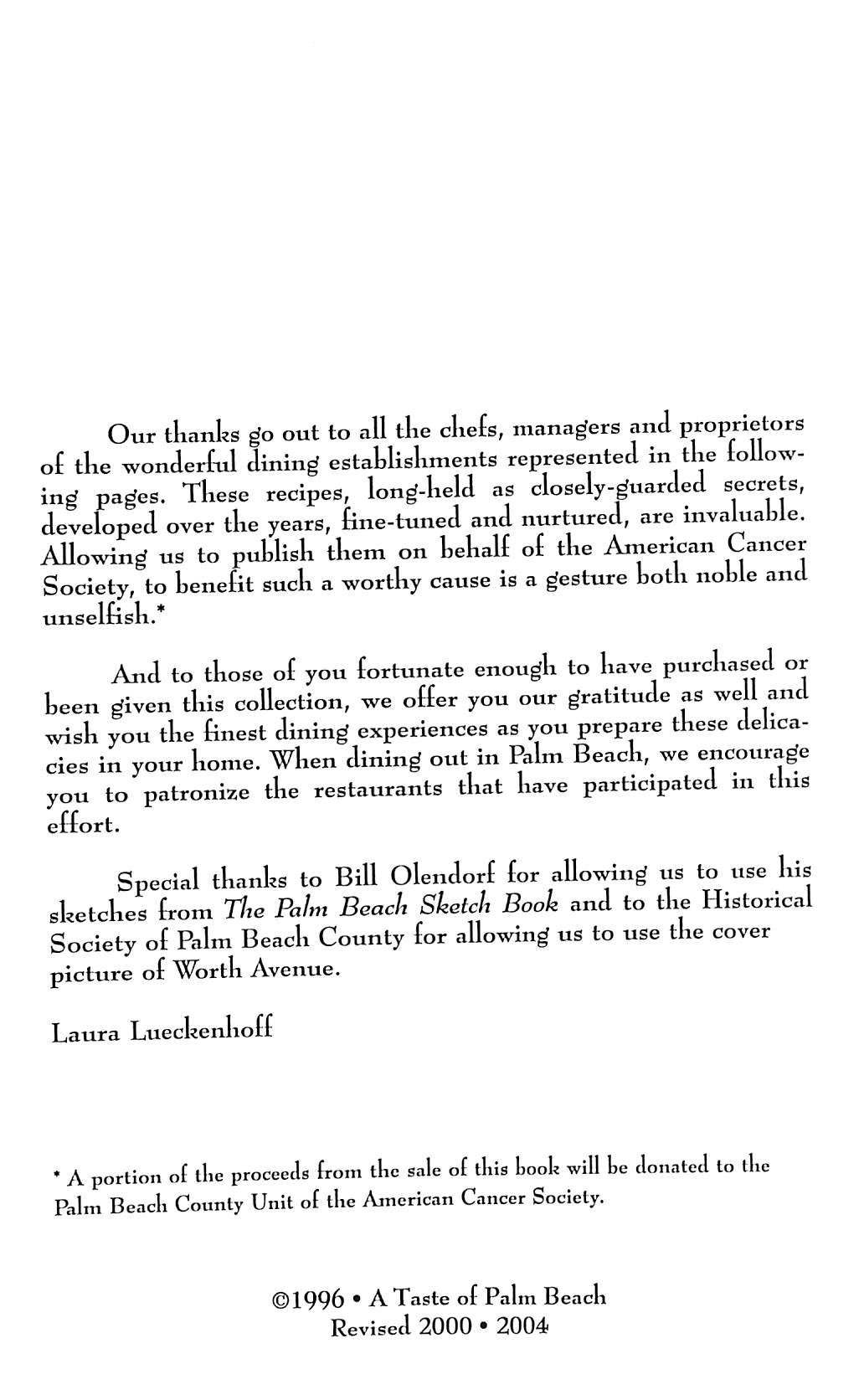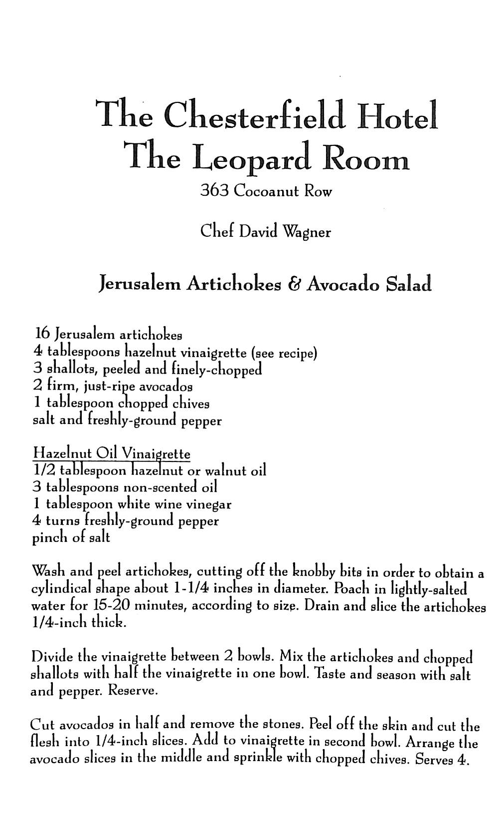 Restaurants include: Bice/ Brazilian Court/ The Breakers/ Charley's Crab/ Chez Jean-Pierre/ The Chesterfield Hotel-The Leopard Room/ Chuck & Harold's/ The Colony Hotel-The Colony Dining Room/ Renato's/ The Ritz Carlton/ 264 The Grill/ Cafe L'Europe/ Ta boo & Testa's