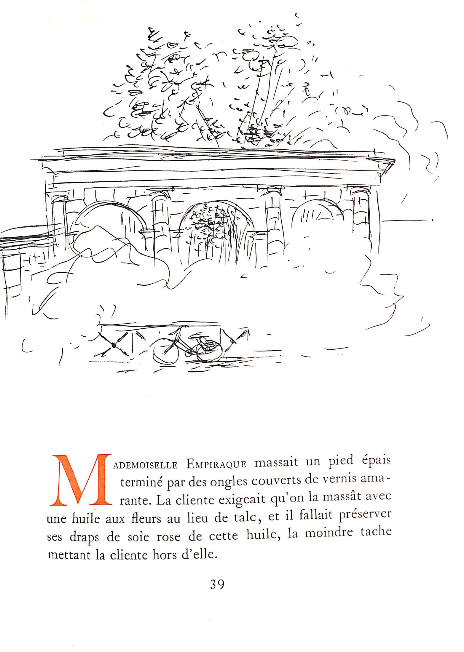 Daisy Fellowes. Illustrations by Marcel Vertès. Éditions de France. Paris. 1935. First edition. Deluxe edition; from a total edition of 1,000, this being no. 15 of 20 examples printed on Japon Blanc Super-Nacré, signed by the author and artist, numbered, and containing two original drawings by Vertès and two additional suites of the illustrations in sanguine and green. Signed by Daisy Fellowes and Marcel Vertès in ink to half-title. From the library of Diana and Duff Cooper with their ex libris bookplate (designed by Rex Whistler) pasted to front pastedown. Hardback, large octavo; bound in full pink morocco with gilt linear decoration to boards, gilt column design to spine with title, gilt inner dentelles, top edge gilt; originals shocking pink wrappers bound in at rear. 195 pages. Illustrated throughout by Marcel Vertès with 75 illustrations within the text, including 3 double-page illustrations and 10 full-page illustrations. All of the illustrations are duplicated in two suites on different papers without the text – sanguine (red) and vert (green). Also present are two of Vertès’ original ink drawings for the book’s illustrations. Vertès also designed the illustrated wrappers. French. 265 x 205mm. 1.9kg.
