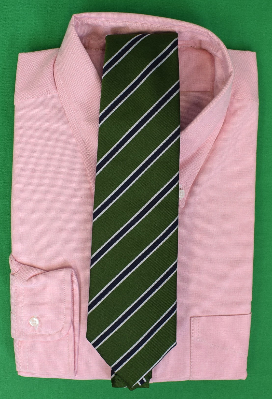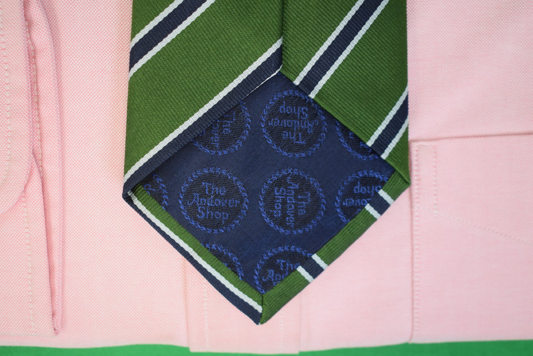 The Andover Shop Green w/ Navy/ Silver Made In England Repp Stripe Silk Tie (NWT)