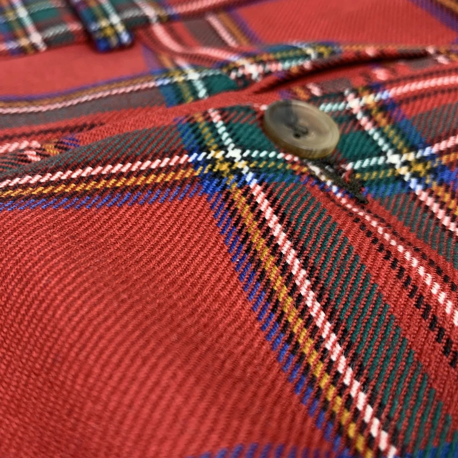 A wonderful woolen tartan in a twill weave, very comfortable and perfect for the season. Great with a camel hair, navy blazer, or your favorite sweater.