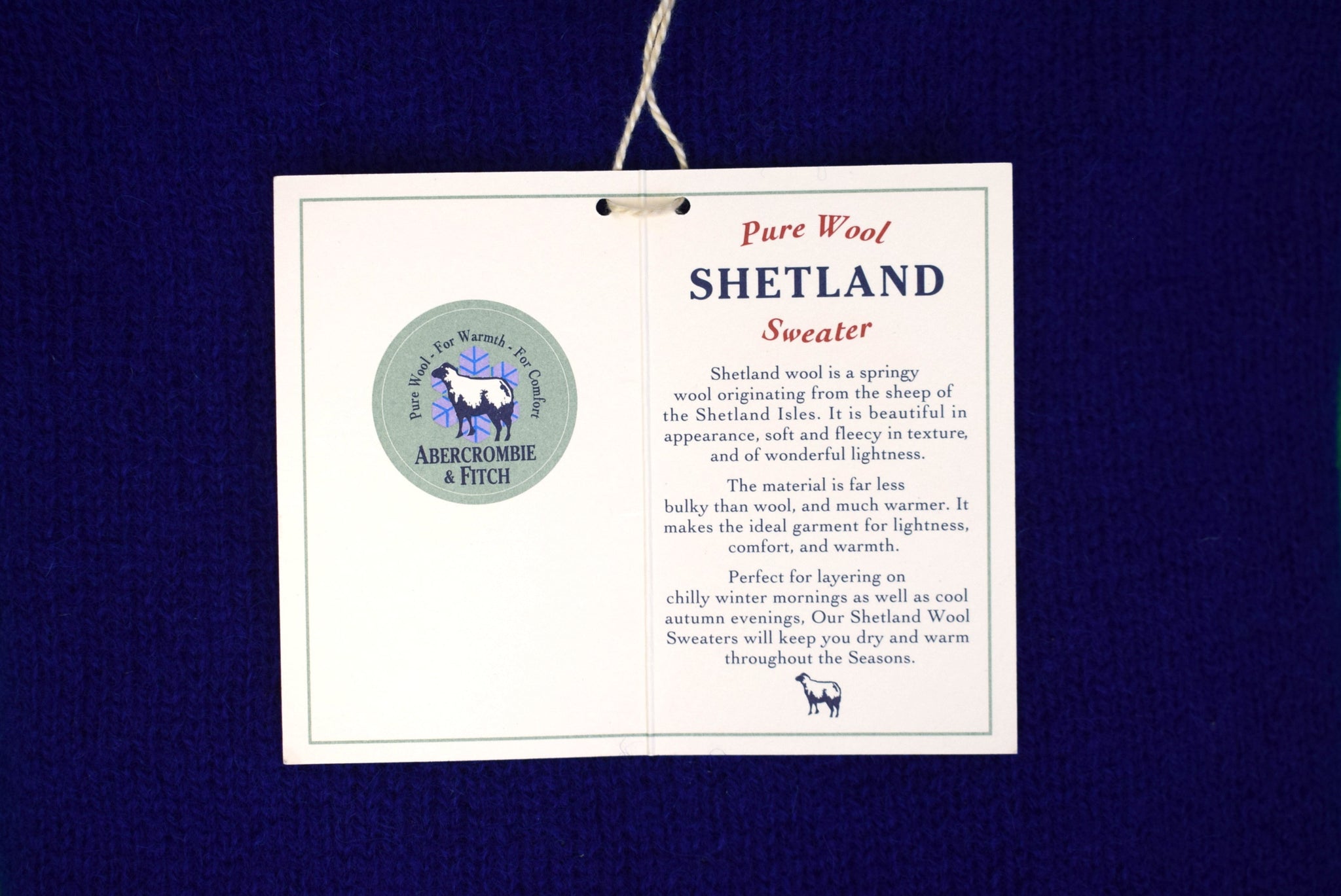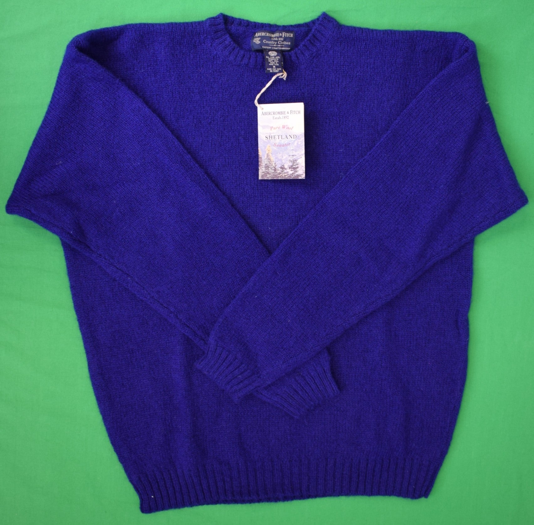 Abercrombie & Fitch Royal Blue Shetland Wool Crew Neck Sweater Sz M (NWT)