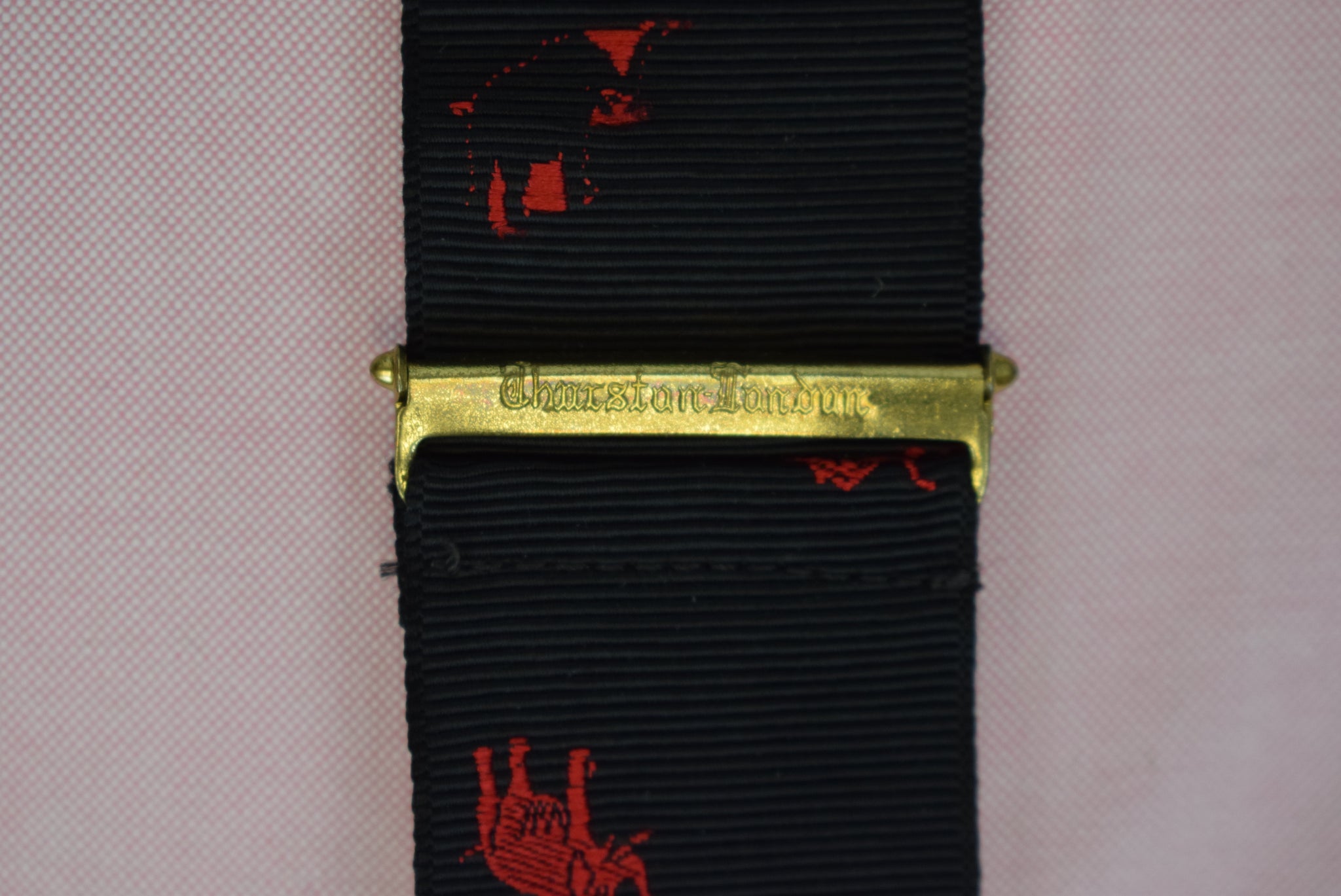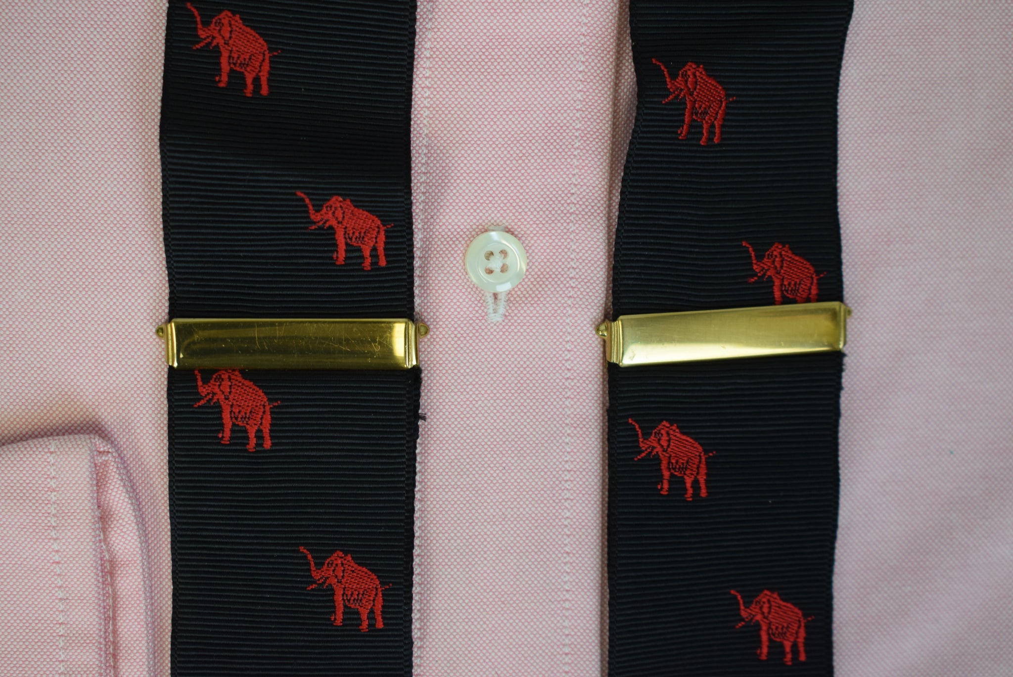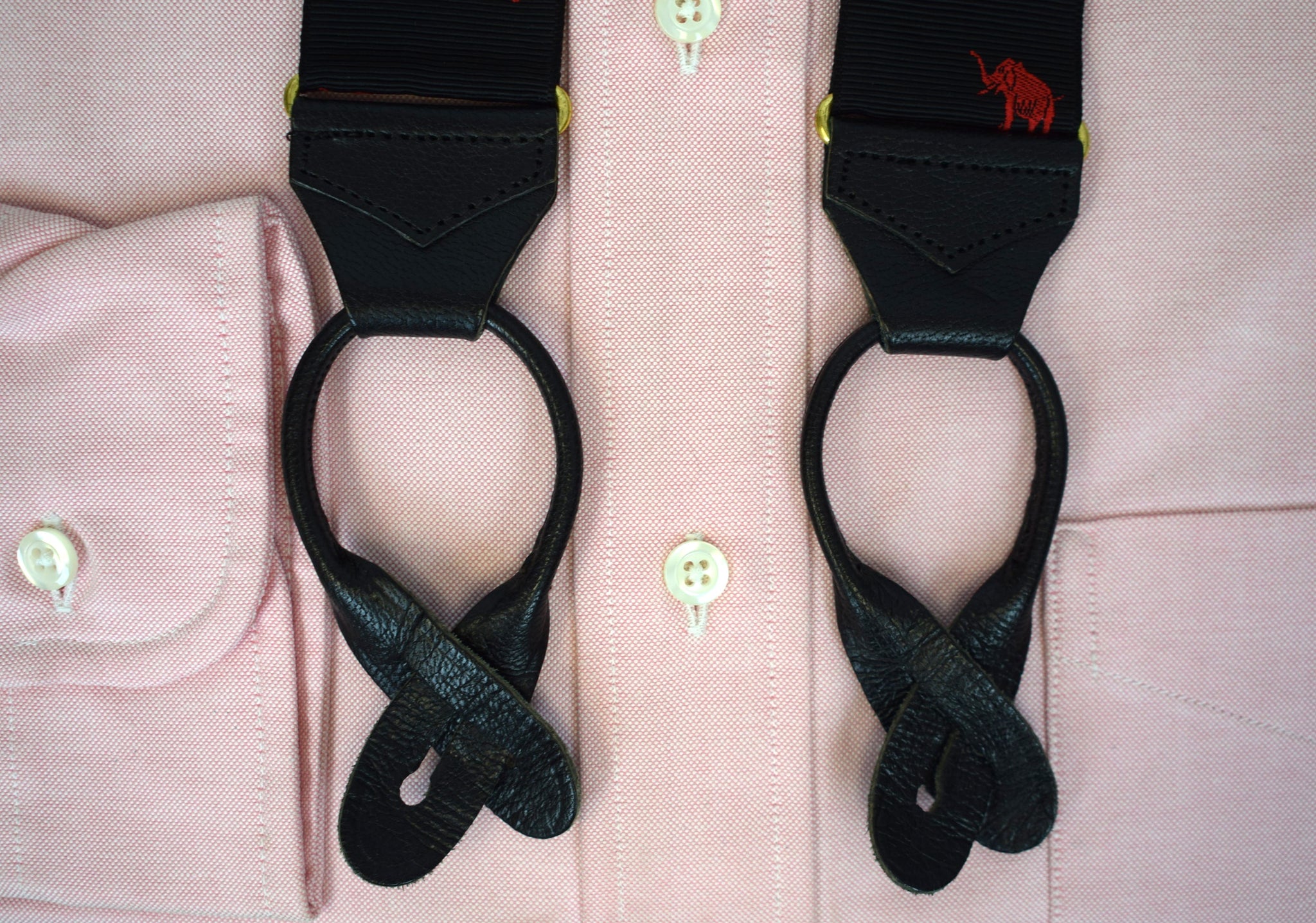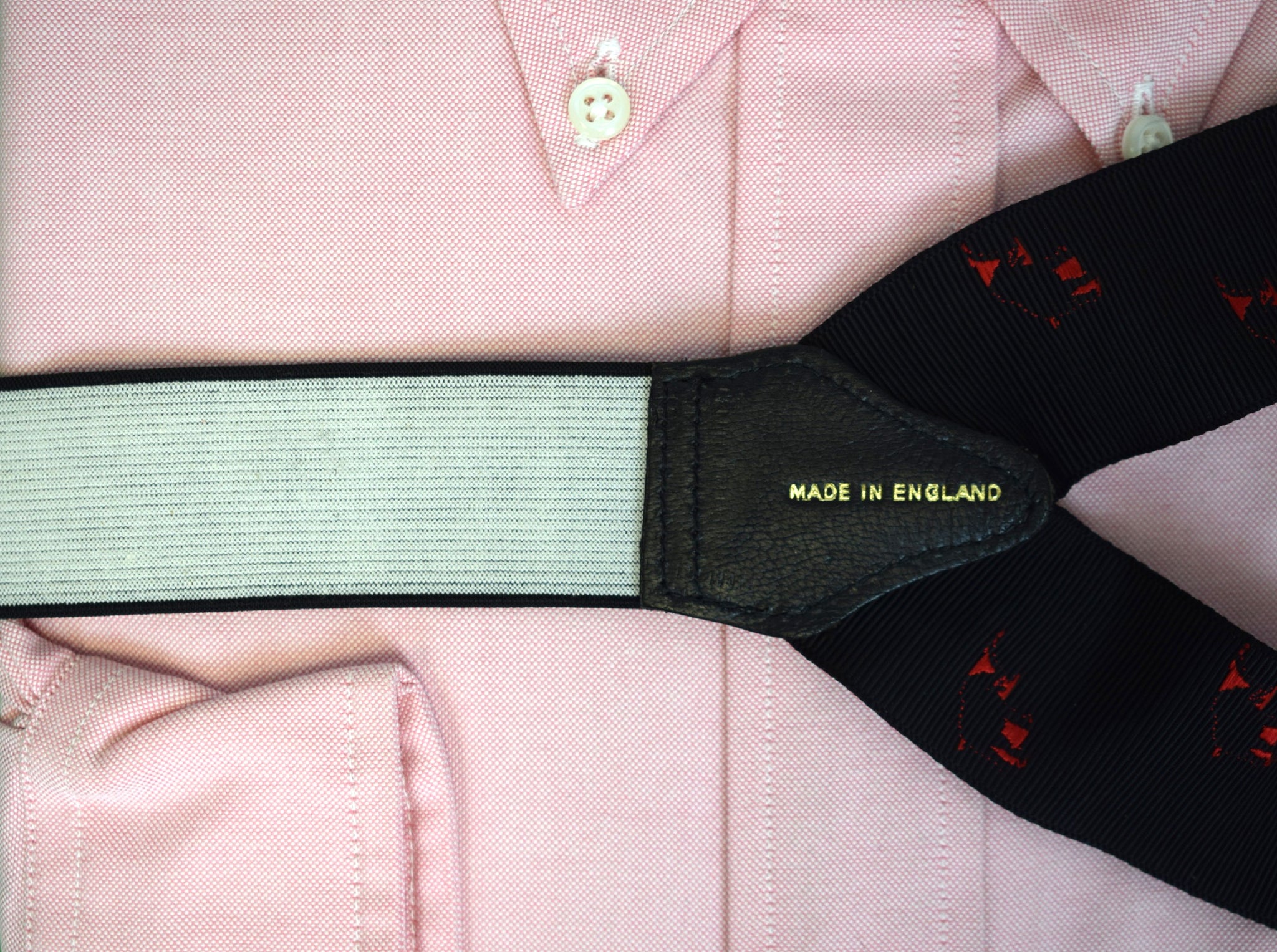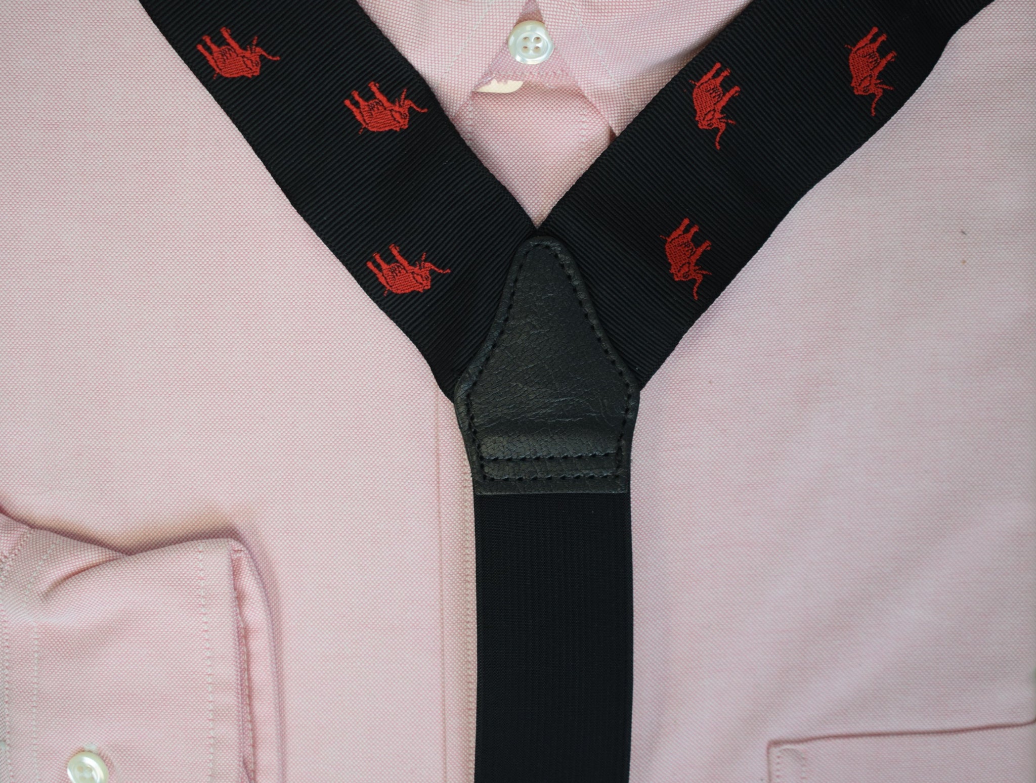 Albert Thurston Black Woven Jacquard Ribbon Braces w/ Red Elephant Motif